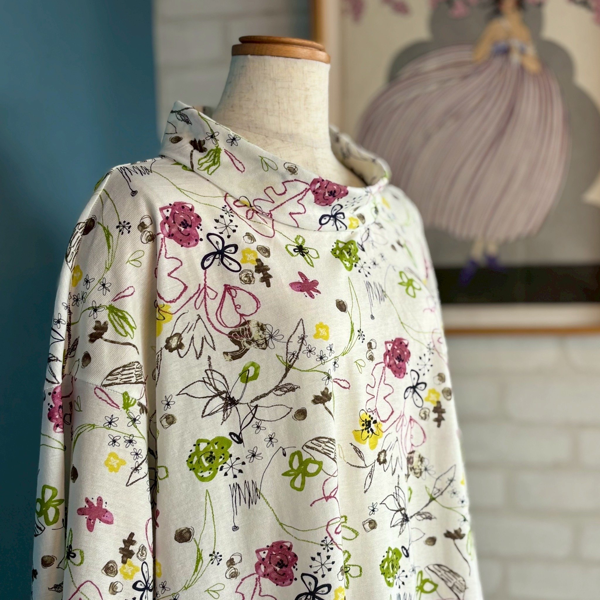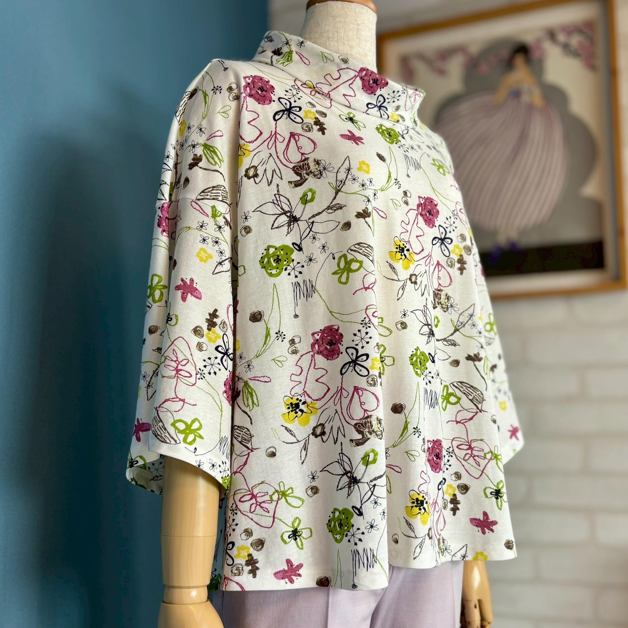 気兼ねなく着られる普段着として作りましたが、カジュアルになりすぎず、ほんのり上品さも感じる仕上がりになりました。