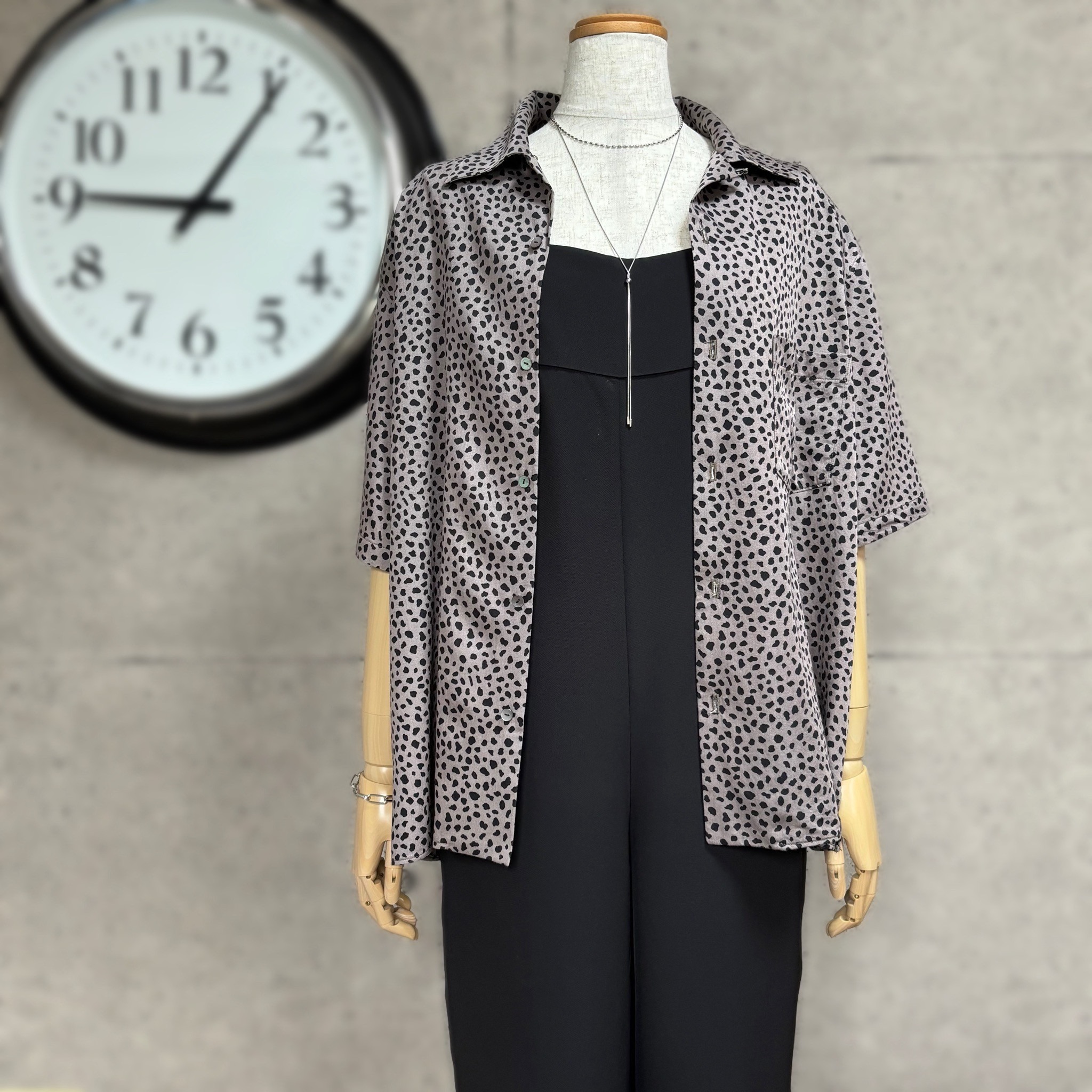 主張しすぎないヒョウ柄なので合わせやすく、ブラックのTシャツとデニムにさらっと羽織れば程よくラフで都会的な雰囲気に、サロペットに合わせると、綺麗めな印象のコーディネートになりました。