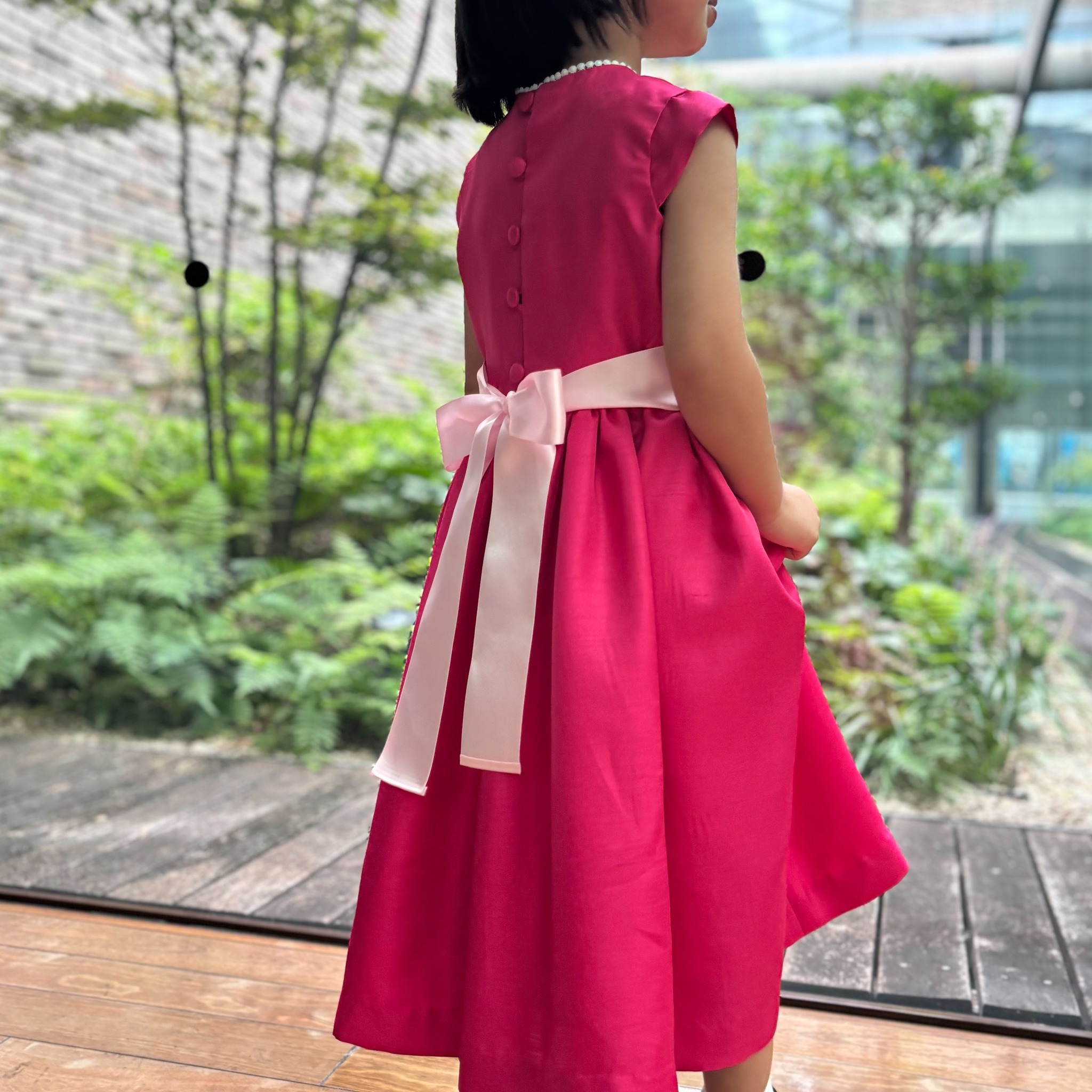 今回は当ショップで販売中の「シャンタン」を使ってキッズドレスを作ってみました。生地選びの参考にしていただけたら嬉しいです。