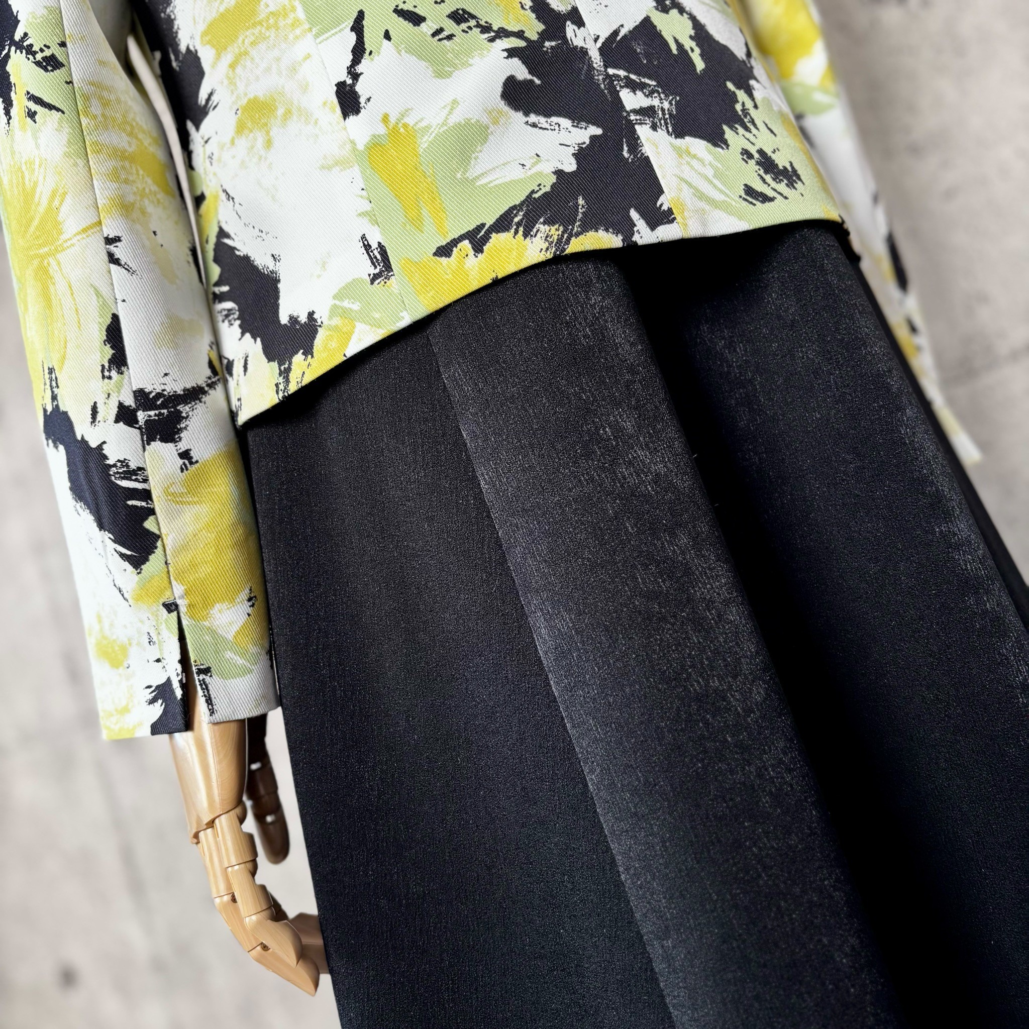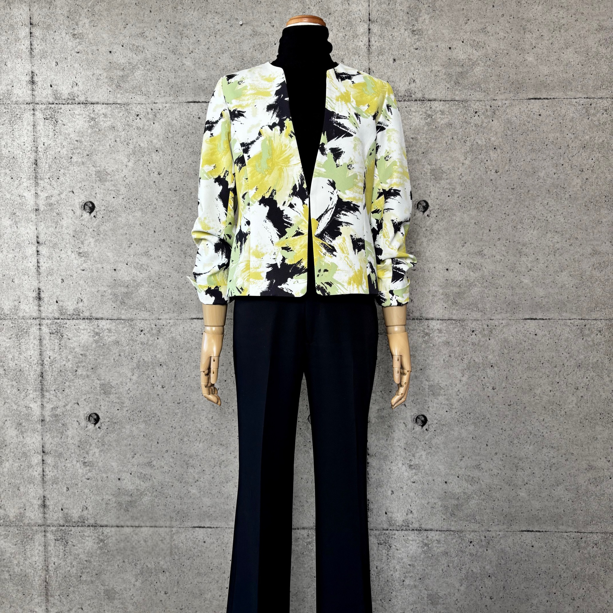 ジャケットに使用したエアロカルゼストレッチは、色鮮やかな柄が印象的で、羽織るだけでコーディネートが一気に明るくなりました。