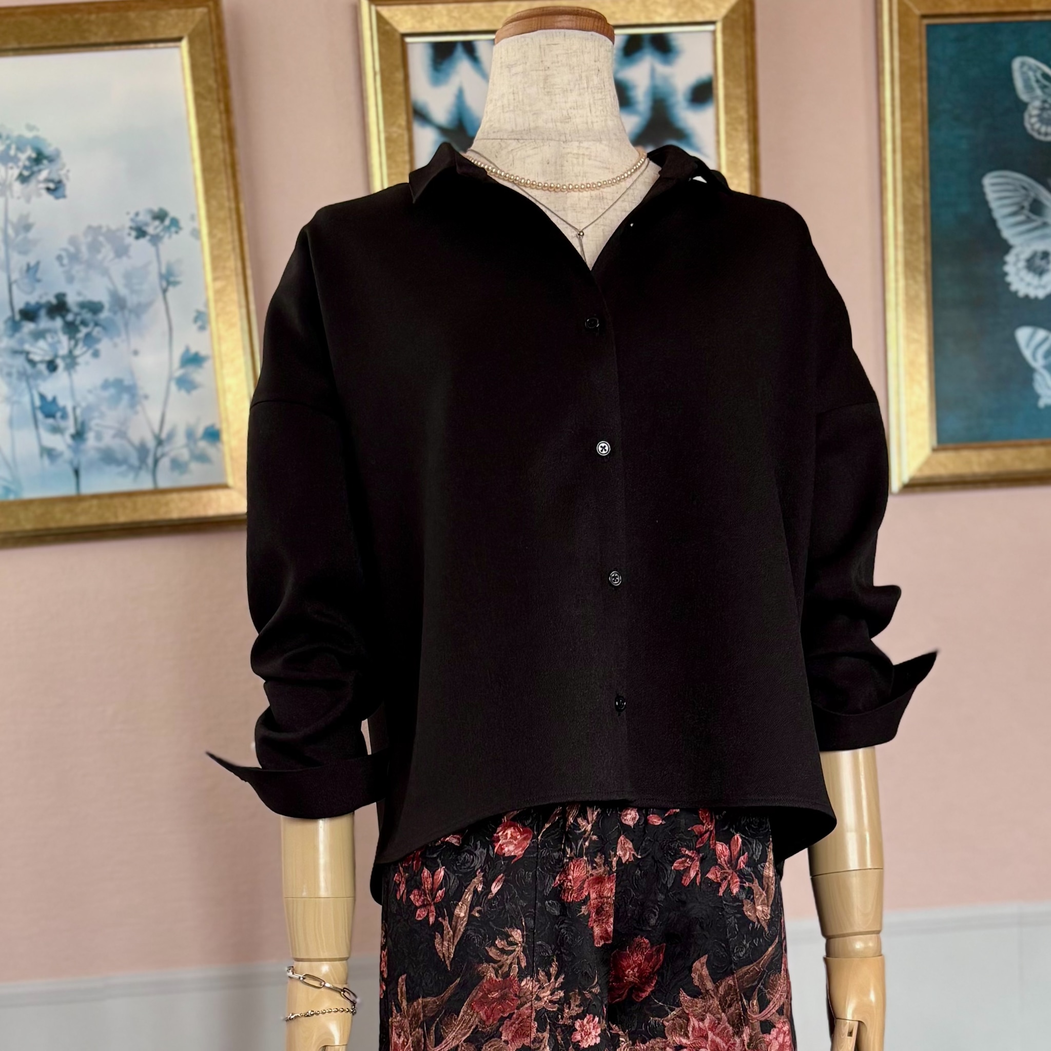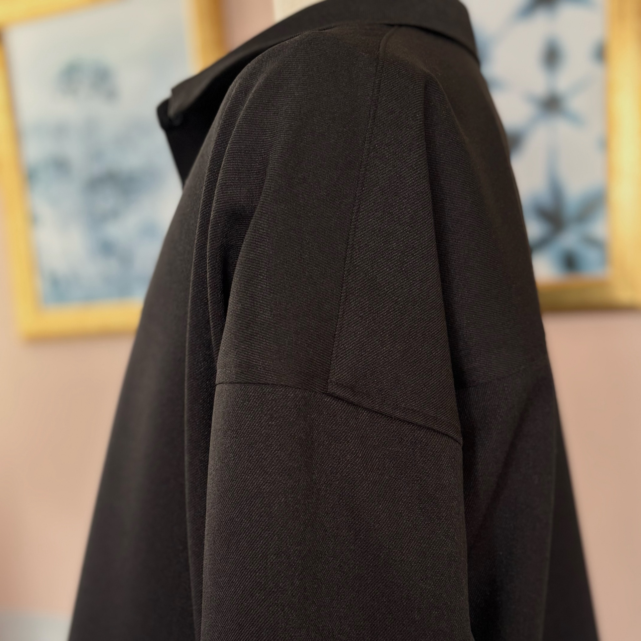 やや厚みのある生地で、シャツに仕立てるにはやや限界に近い厚さかなと感じました。仕上がりはシャツというよりも、軽めのアウターに近い、少ししっかりとした印象になりました。