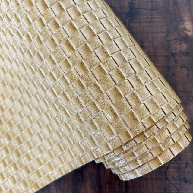 ※50㎝単位の価格を表示しています 【商品説明】 編み込みのデザインが特徴のレザーライクです。程よい厚みと硬さがあり、しっかりとした作りでありながらも柔軟性も兼ね備えています。編み込みの凹凸が自然な風合いを醸し出し、個性的なアイテムの制作にぴったりです。 ※当ショップで取り扱っているレザーライクは、レディースシューズに使用されている高品質な素材です。そのため、非常に丈夫で劣化しにくく、長期間にわたり美しさを保ちます。比較的簡単に加工できるため、初心者からプロフェッショナルまで幅広い方におすすめです。ご家庭でも気軽にさまざまなプロジェクトに取り入れることができます。 【カラーバリエーション】 なし 【商品内容】 サイズ・・120cm幅 厚み・・厚い 質感・・硬い 素材・・合成皮革、ポリエステル他 商用利用・・可能 【表示価格】 50cm単位の価格を表示しています。 購入数量で、ご希望の長さを調整してください。 (例) 数量1=50㎝ 数量3=1.5m