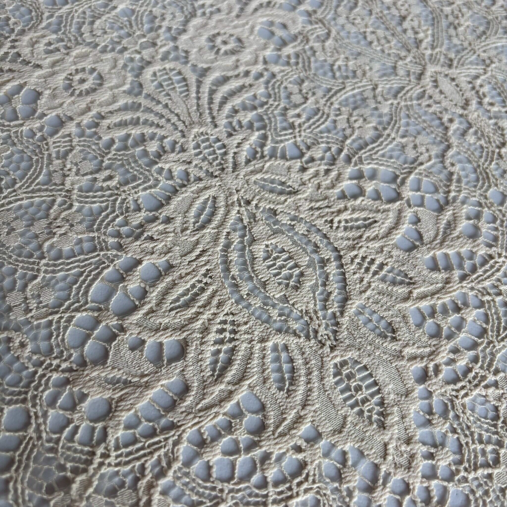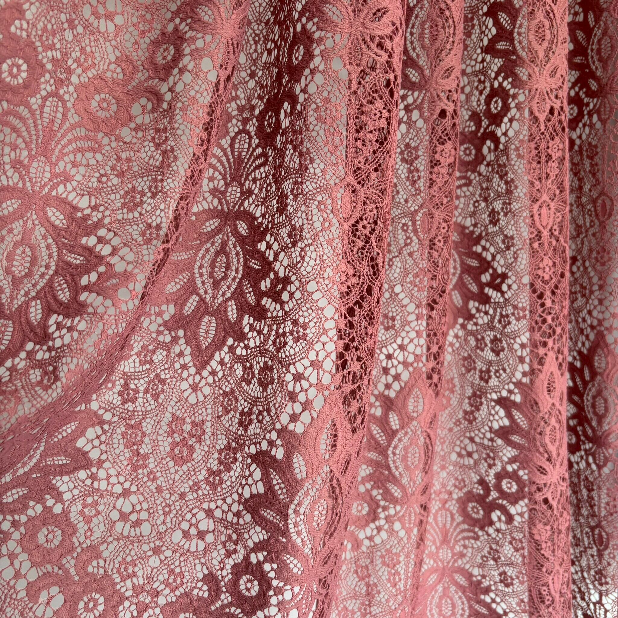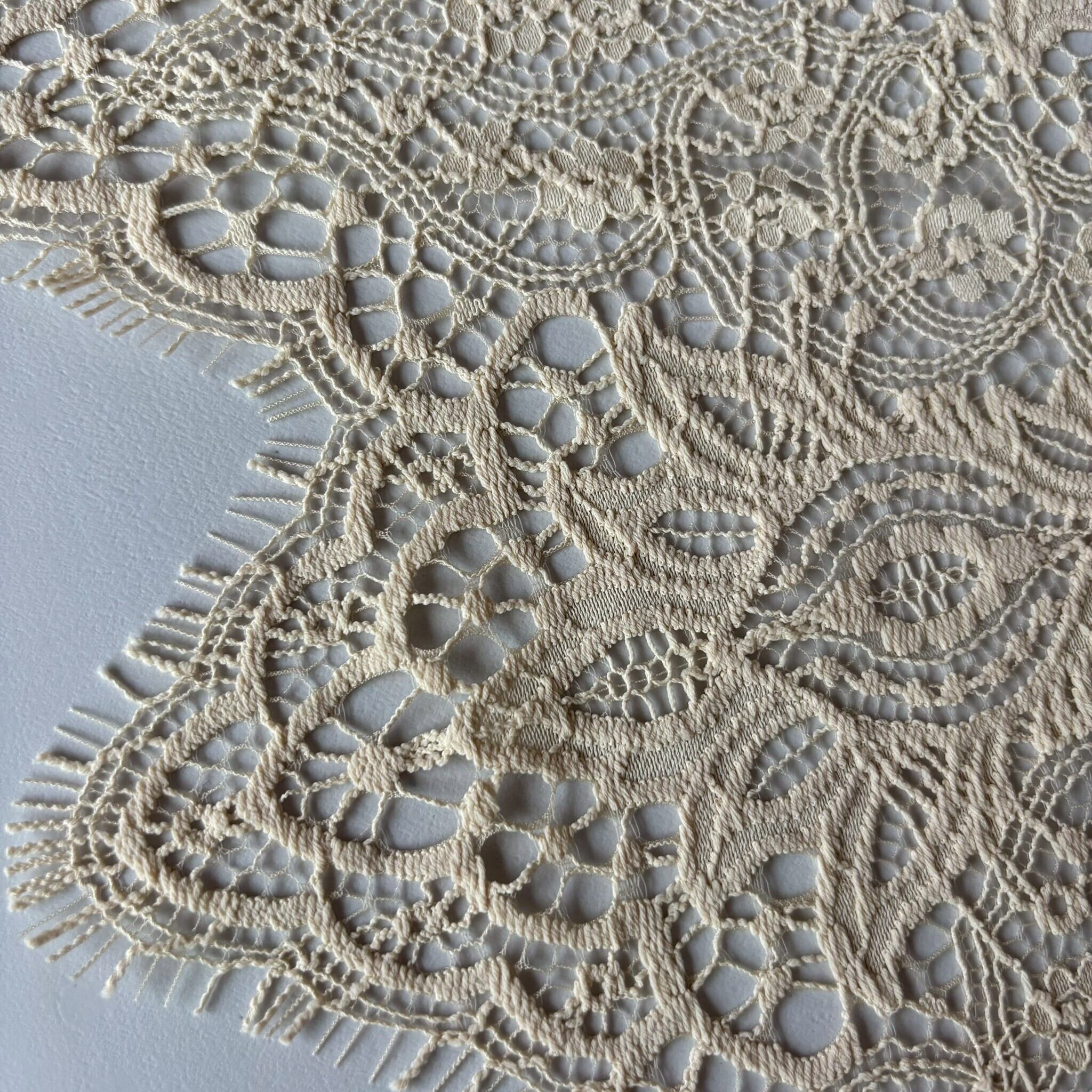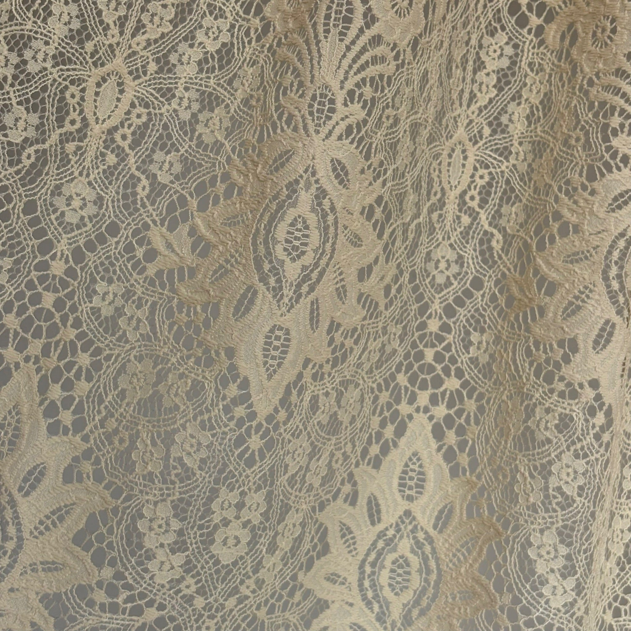 華やかで繊細な模様が美しい、高級レース地です。タイトスカートなどの洋服はもちろん、小物やインテリアなど、幅広い用途にご利用いただけます。生地の両端にはスカラップが施されており、そのままスカートの裾などにもご活用いただけます。