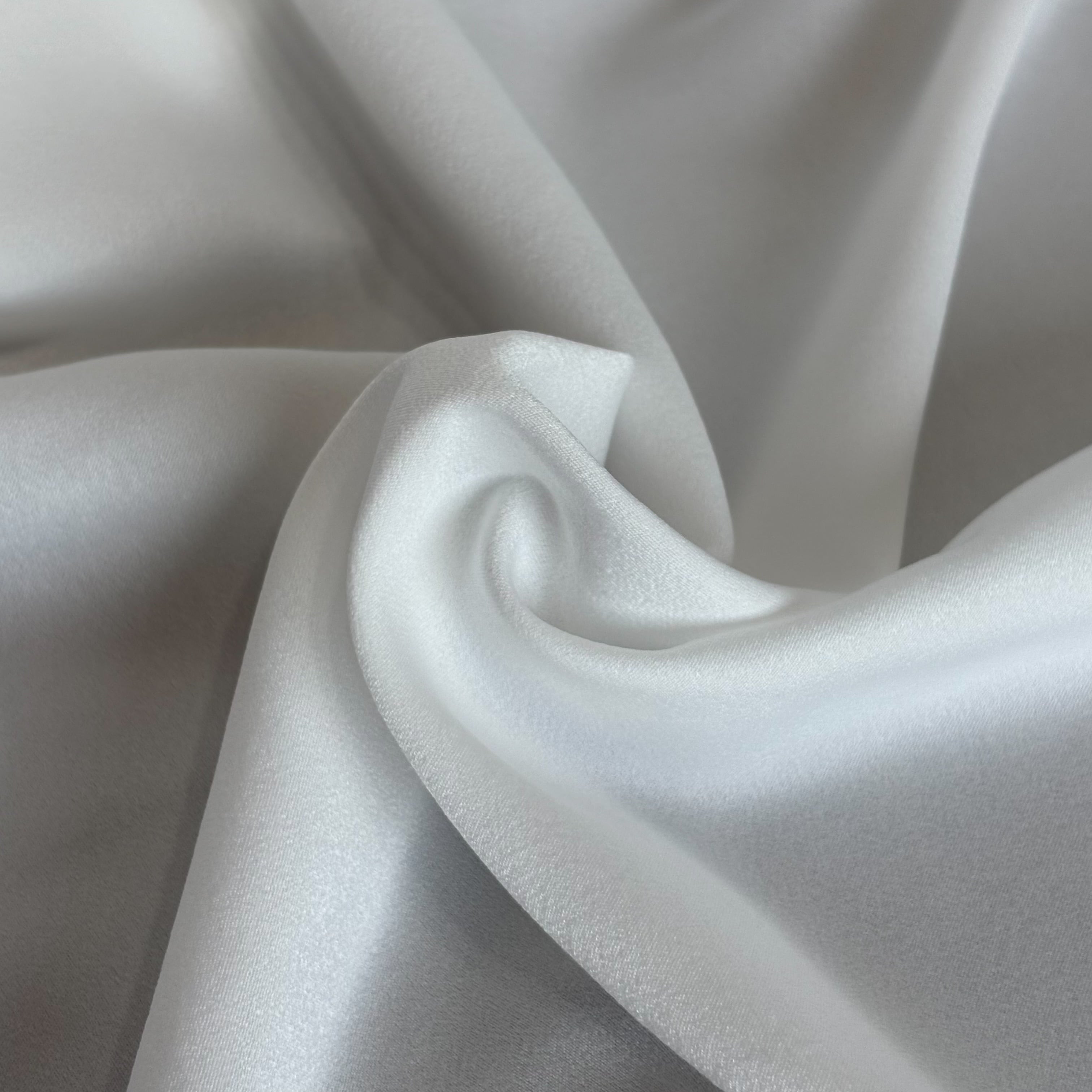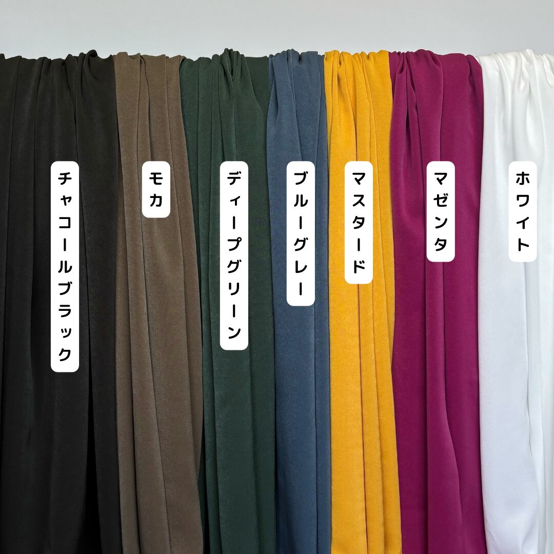 パウダー調のやわらかなタッチと、優しいふくらみ感が魅力の上質なサテン生地です。ベルベットのように奥行きのある光沢感があり、ドレスやスカートなど幅広いアイテムに活用できます。
