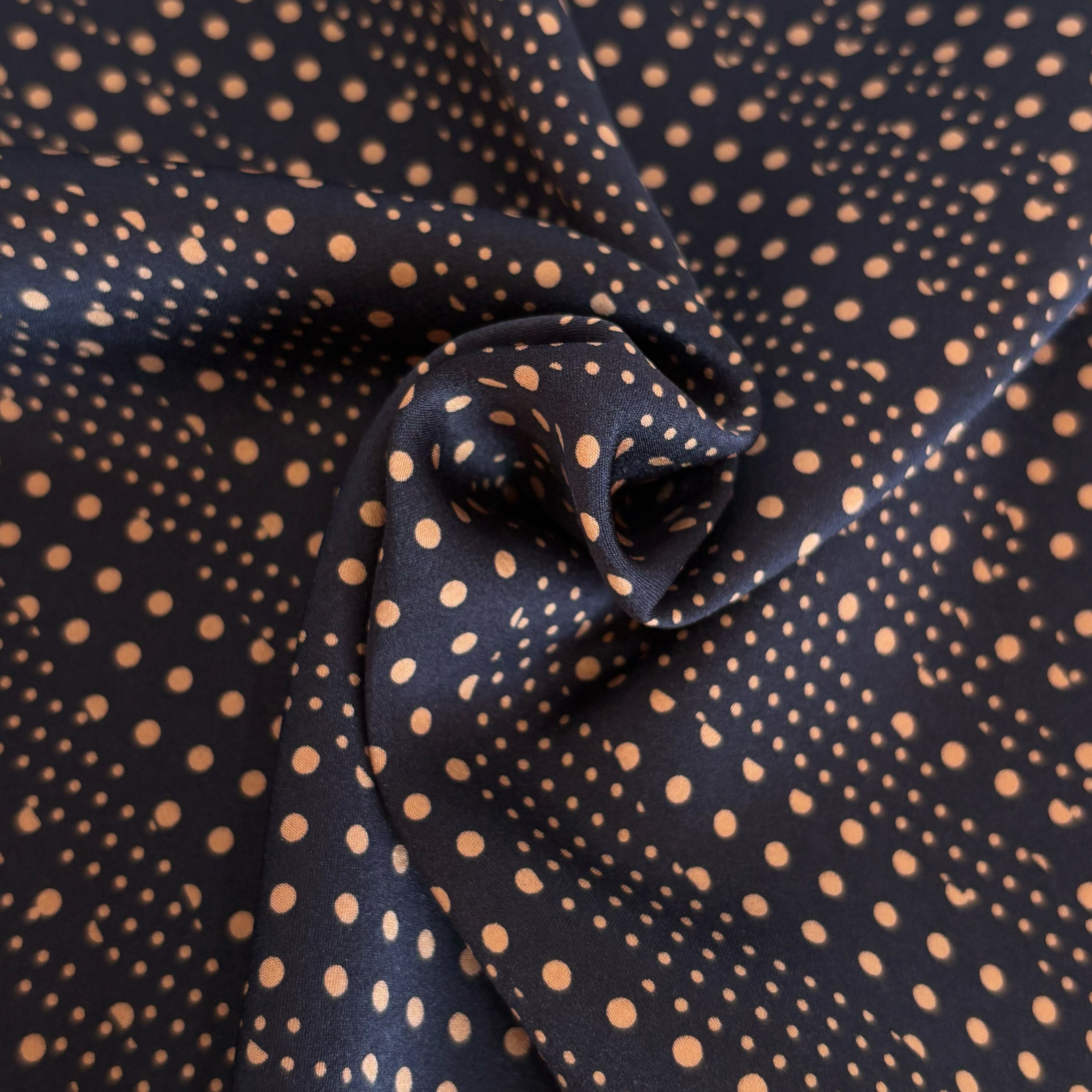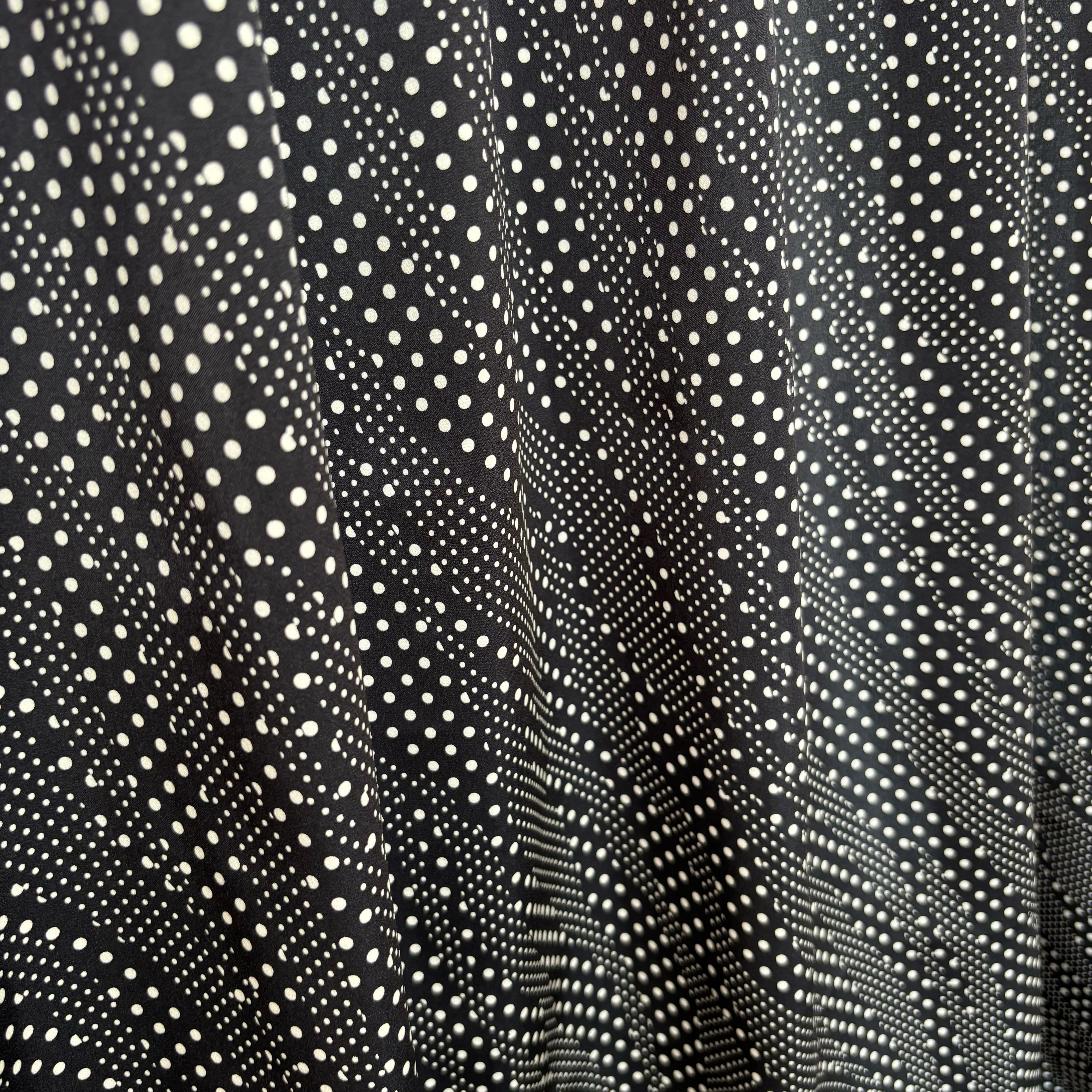 シルクのような高級感のある光沢が魅力の薄手サテン生地です。やわらかく優しいタッチで、肌に心地よく寄り添います。シャツやブラウス、スカートなど幅広い用途に活用できます。