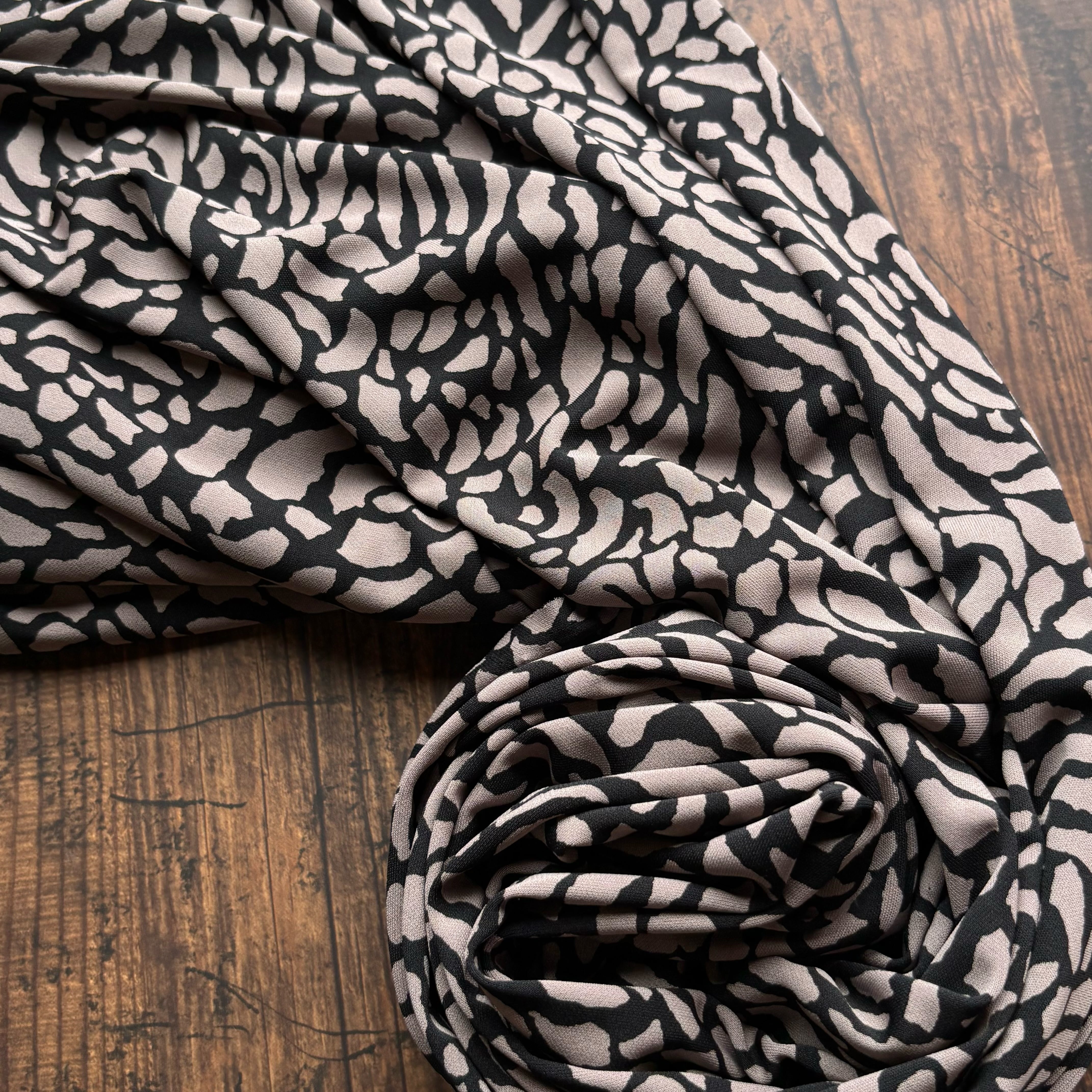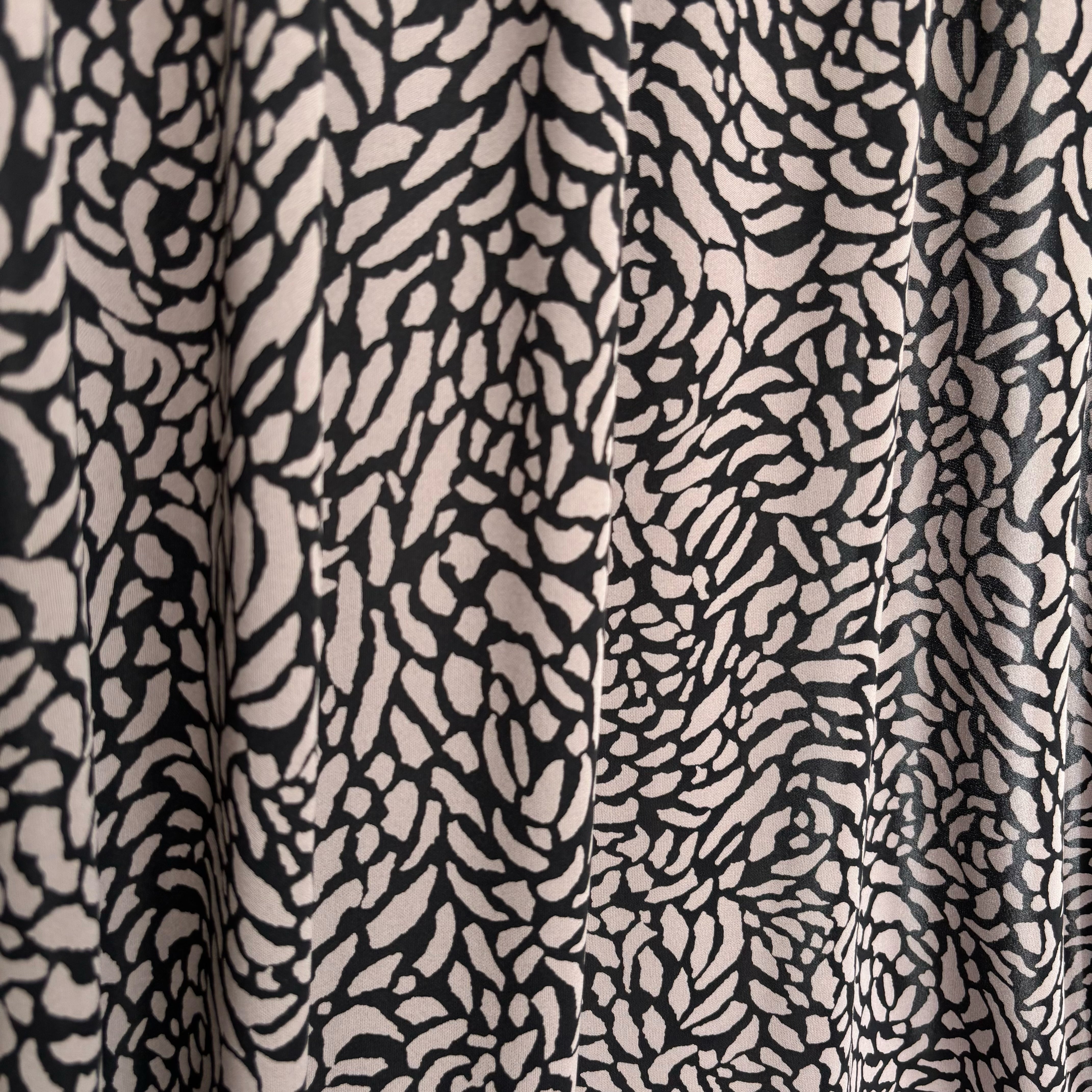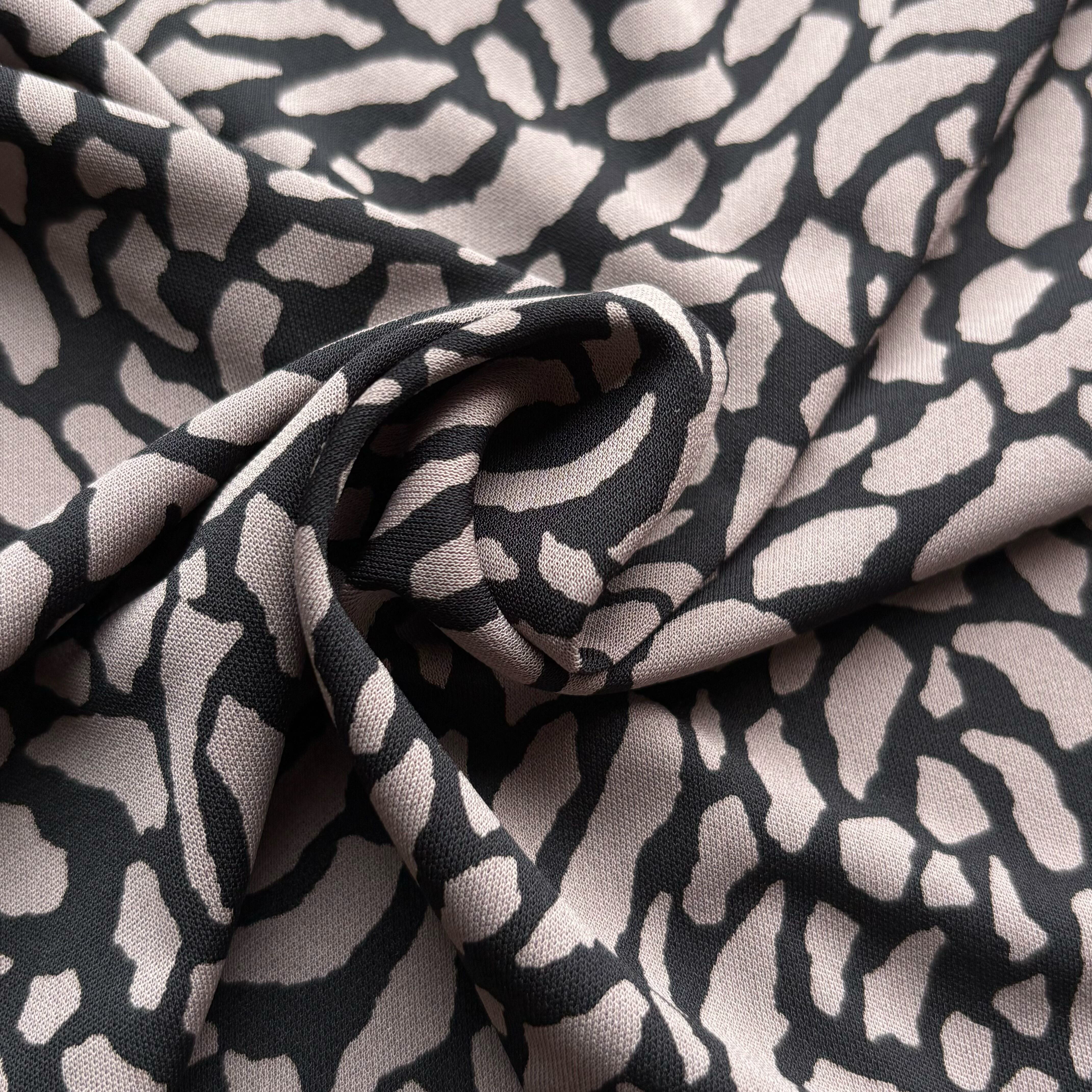 表面が滑らかなスムース生地で、美しいドレープ性が魅力です。さらりとした肌触りに加え、接触冷感を備えているため、オールシーズンで快適にお使いいただけます。適度な伸縮性と程よい厚みがあり、Tシャツやワンピース、カーディガンなど、幅広い用途に活用できます。