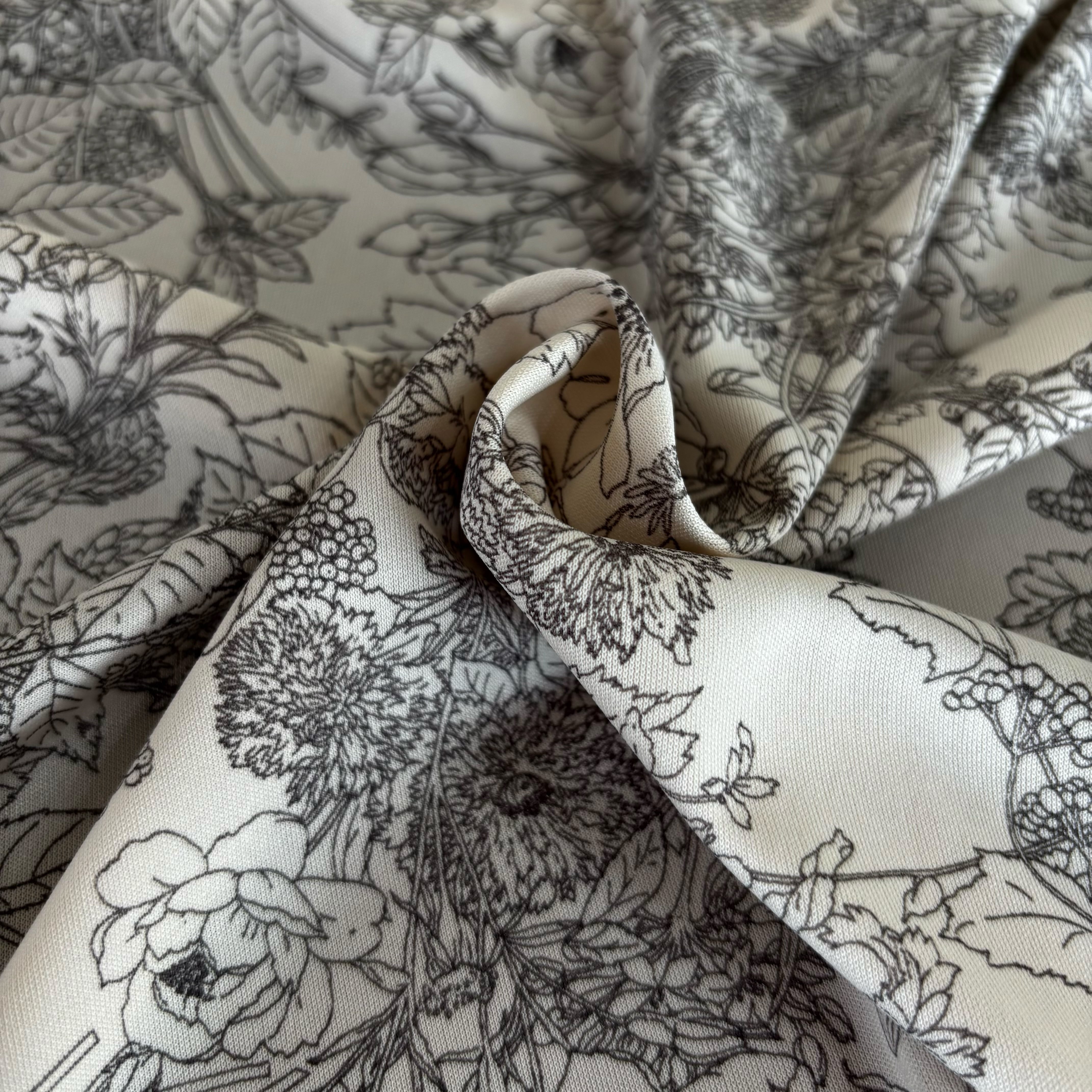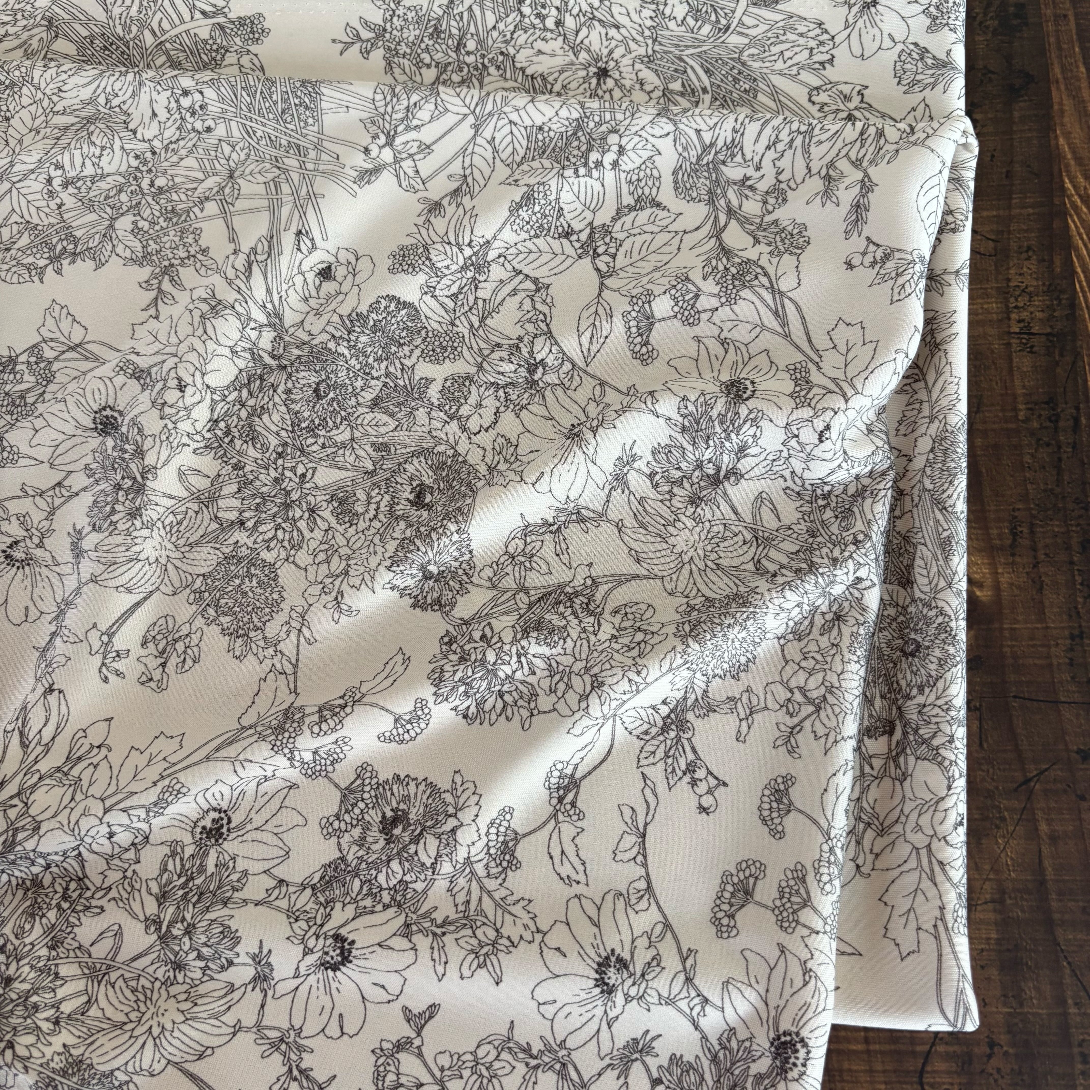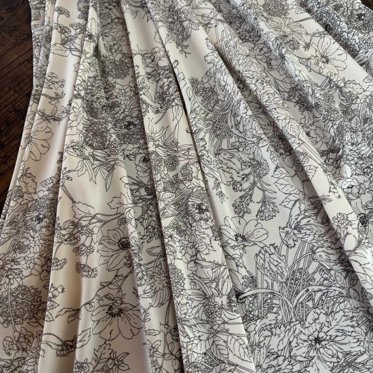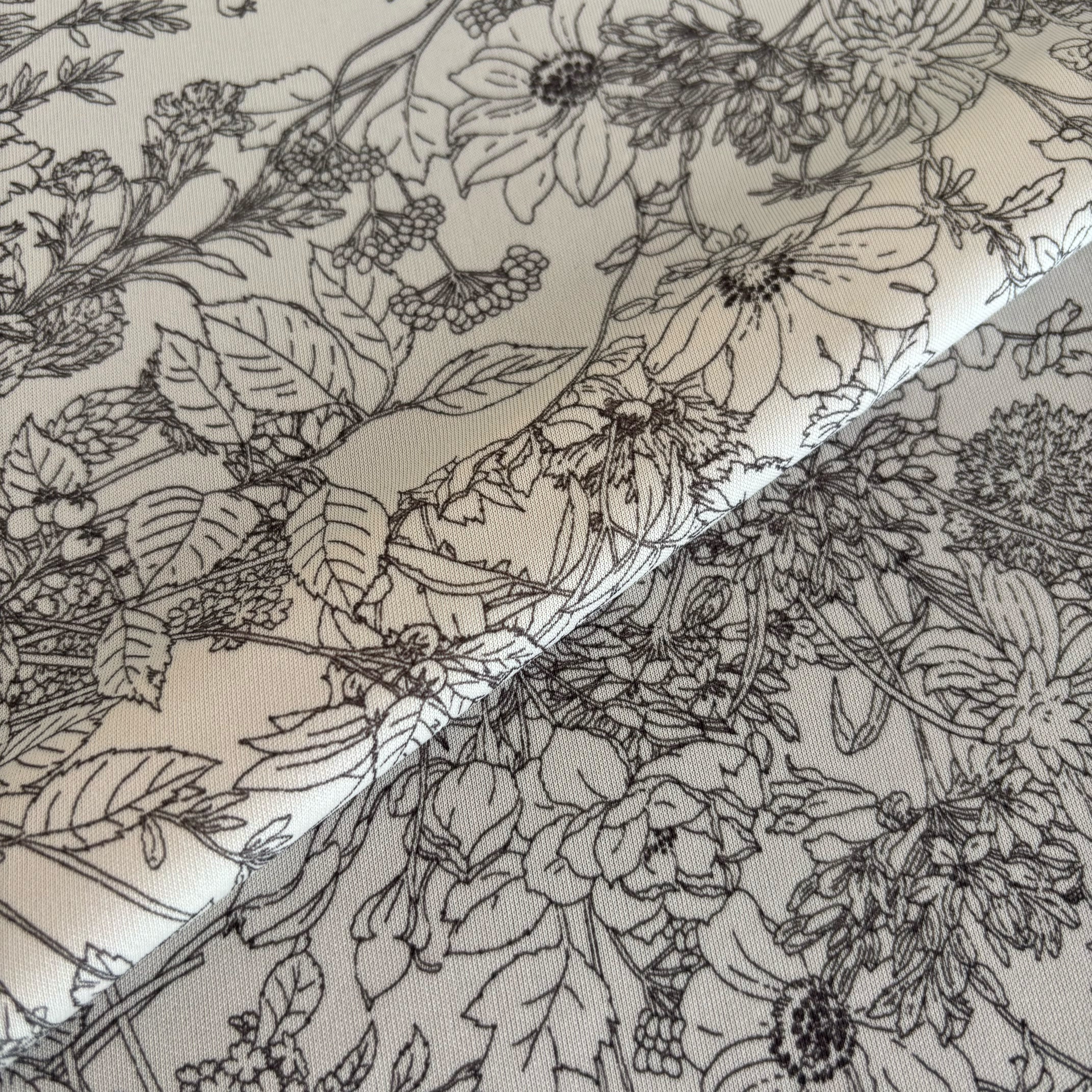 表面が滑らかなスムース生地で、美しいドレープ性が魅力です。さらりとした肌触りに加え、接触冷感を備えているため、オールシーズンで快適にお使いいただけます。適度な伸縮性と程よい厚みがあり、Tシャツやワンピース、カーディガンなど、幅広い用途に活用できます。