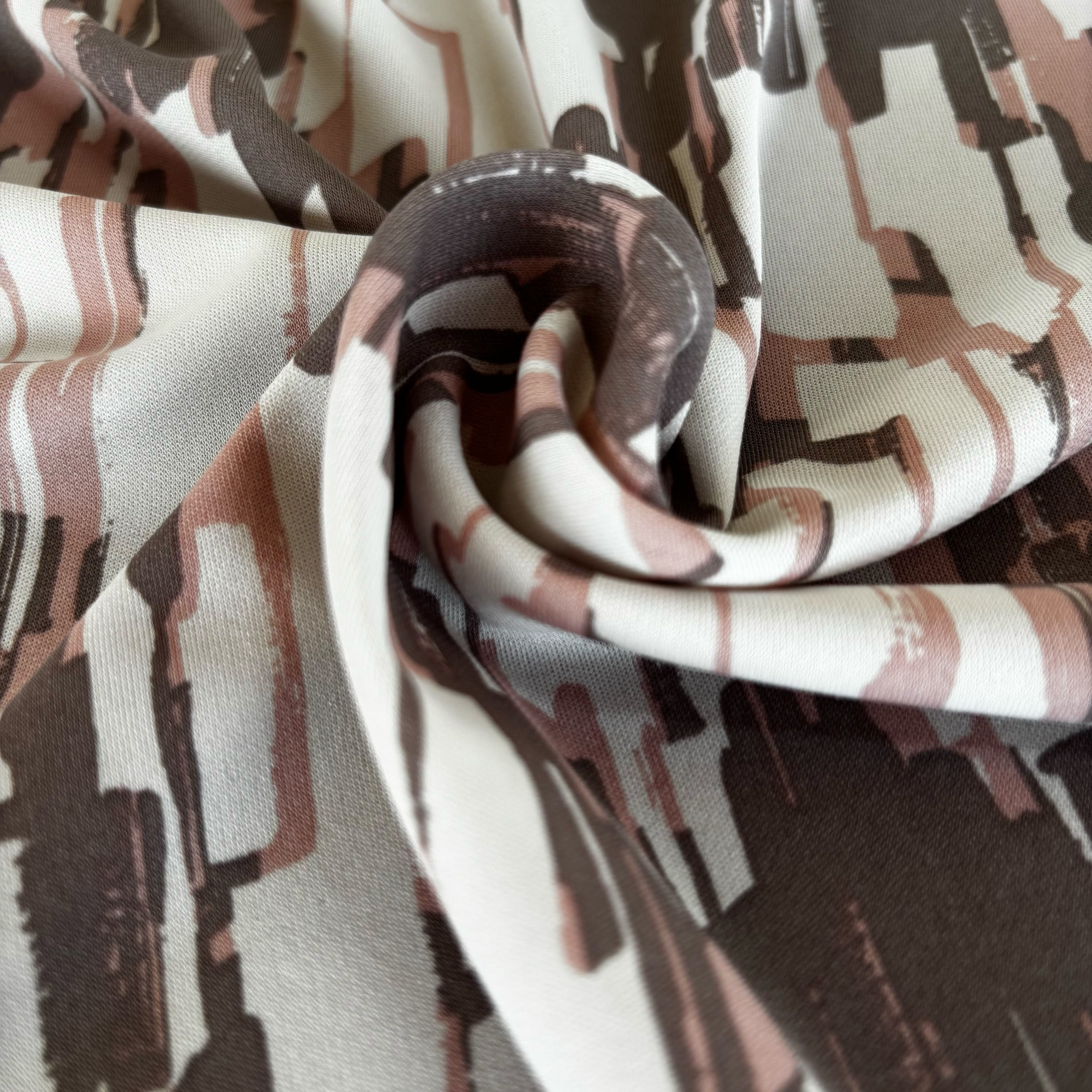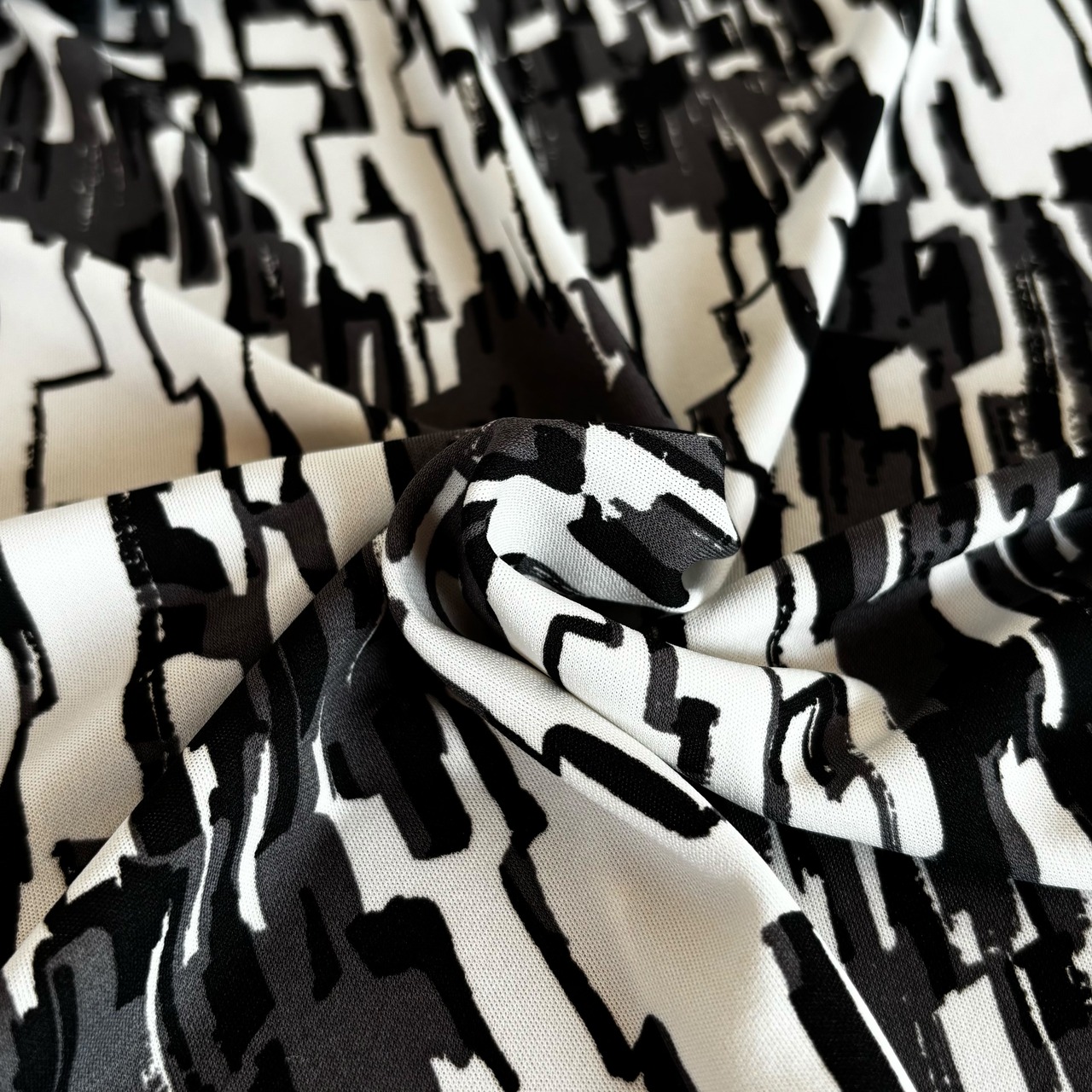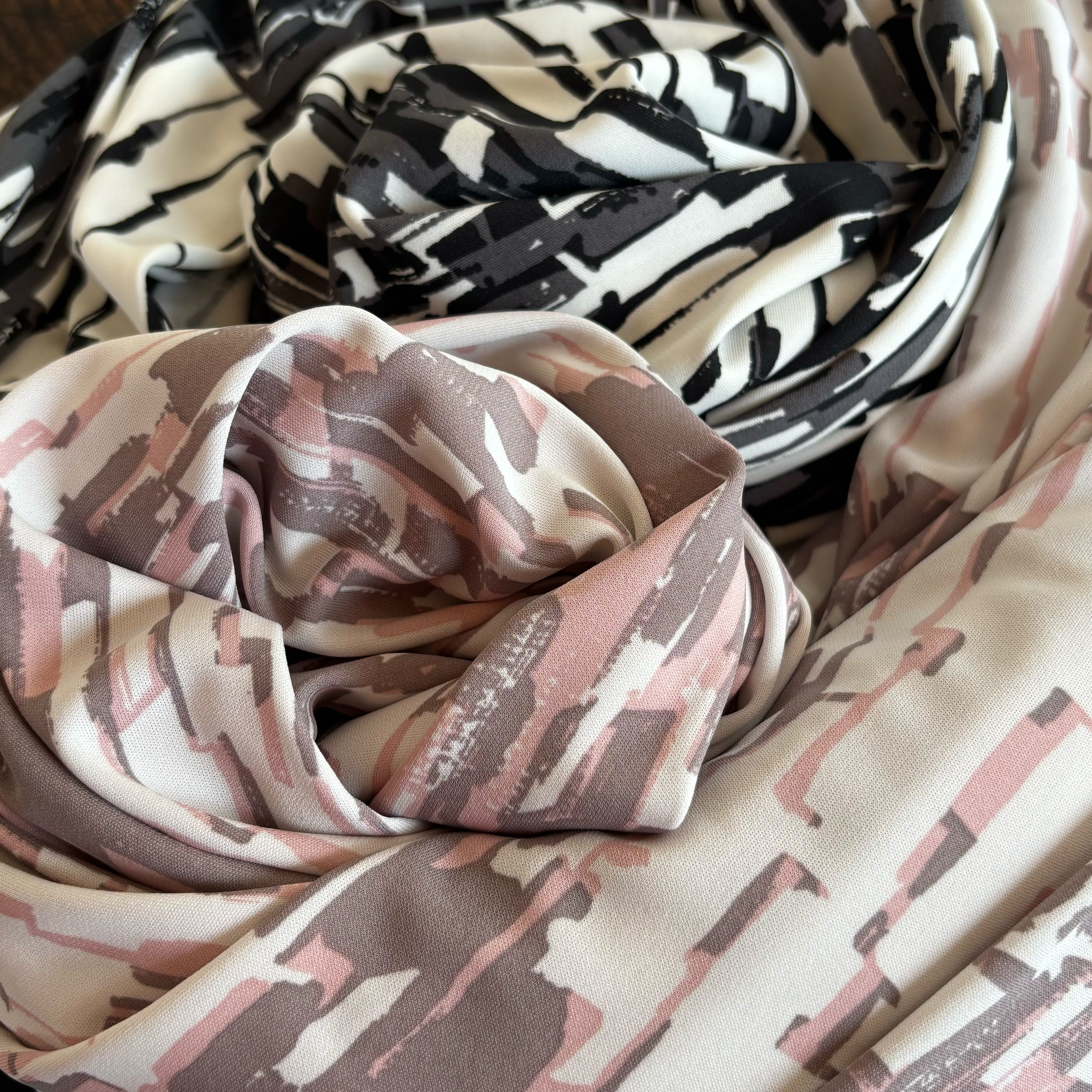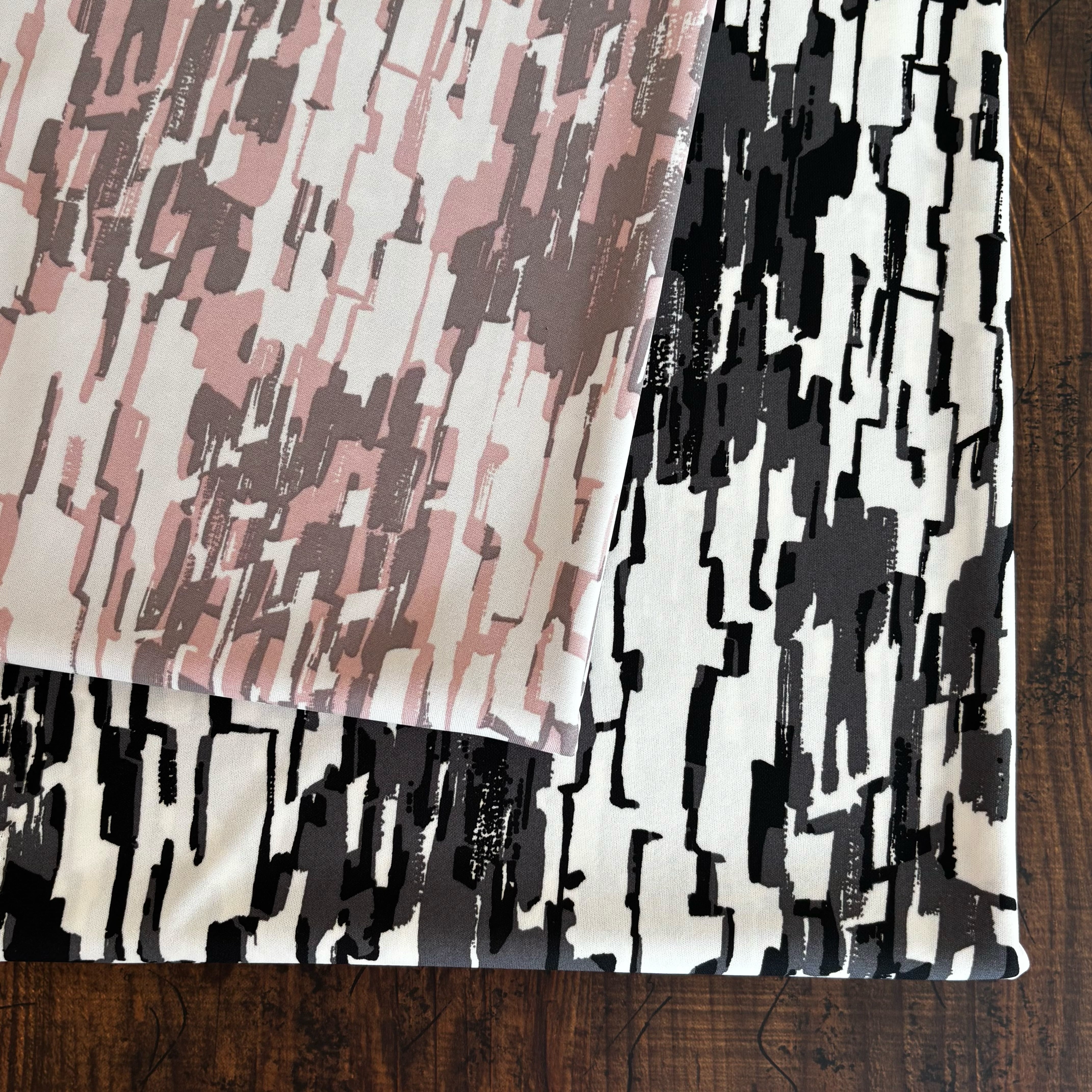 表面が滑らかなスムース生地で、美しいドレープ性が魅力です。さらりとした肌触りに加え、接触冷感を備えているため、オールシーズンで快適にお使いいただけます。適度な伸縮性と程よい厚みがあり、Tシャツやワンピース、カーディガンなど、幅広い用途に活用できます。