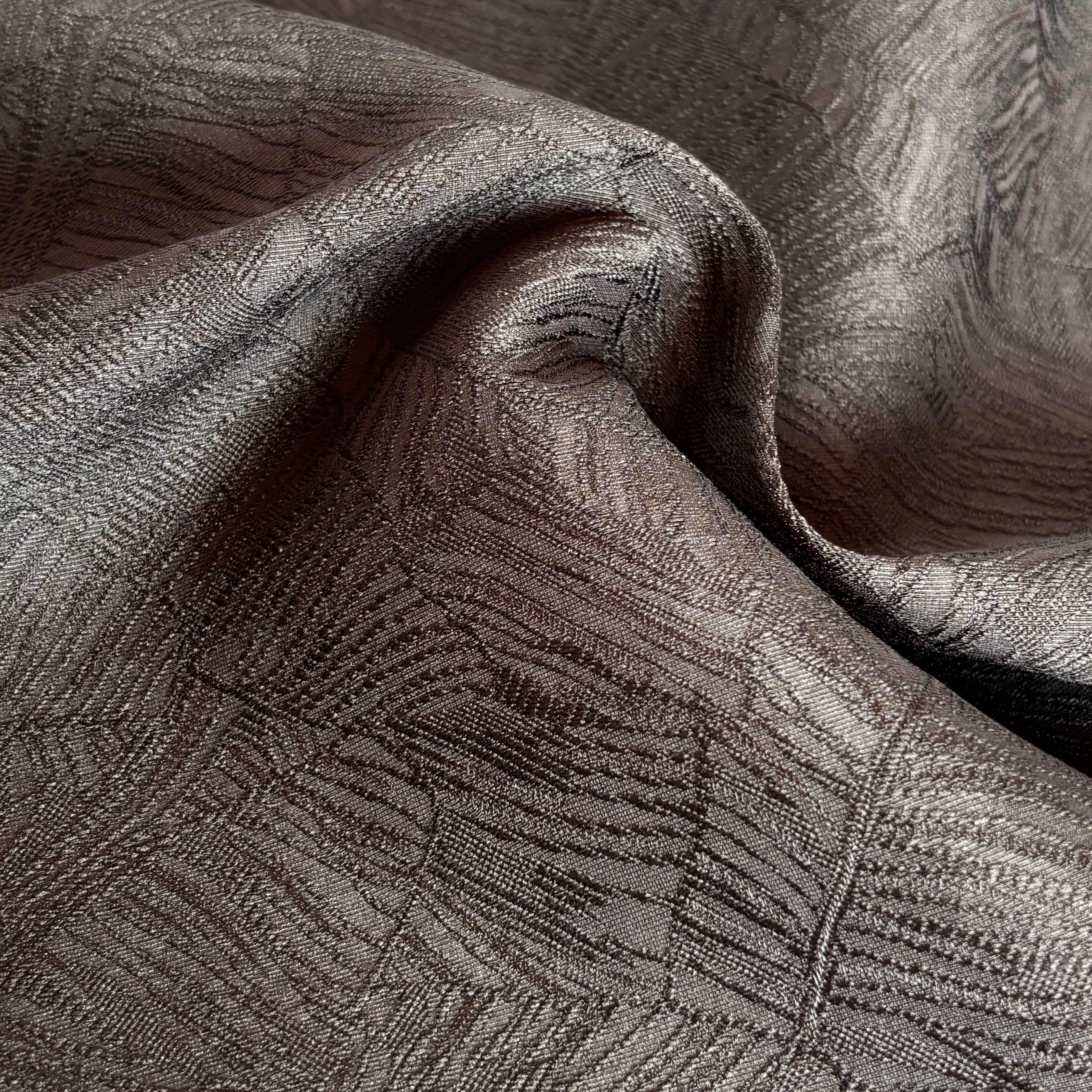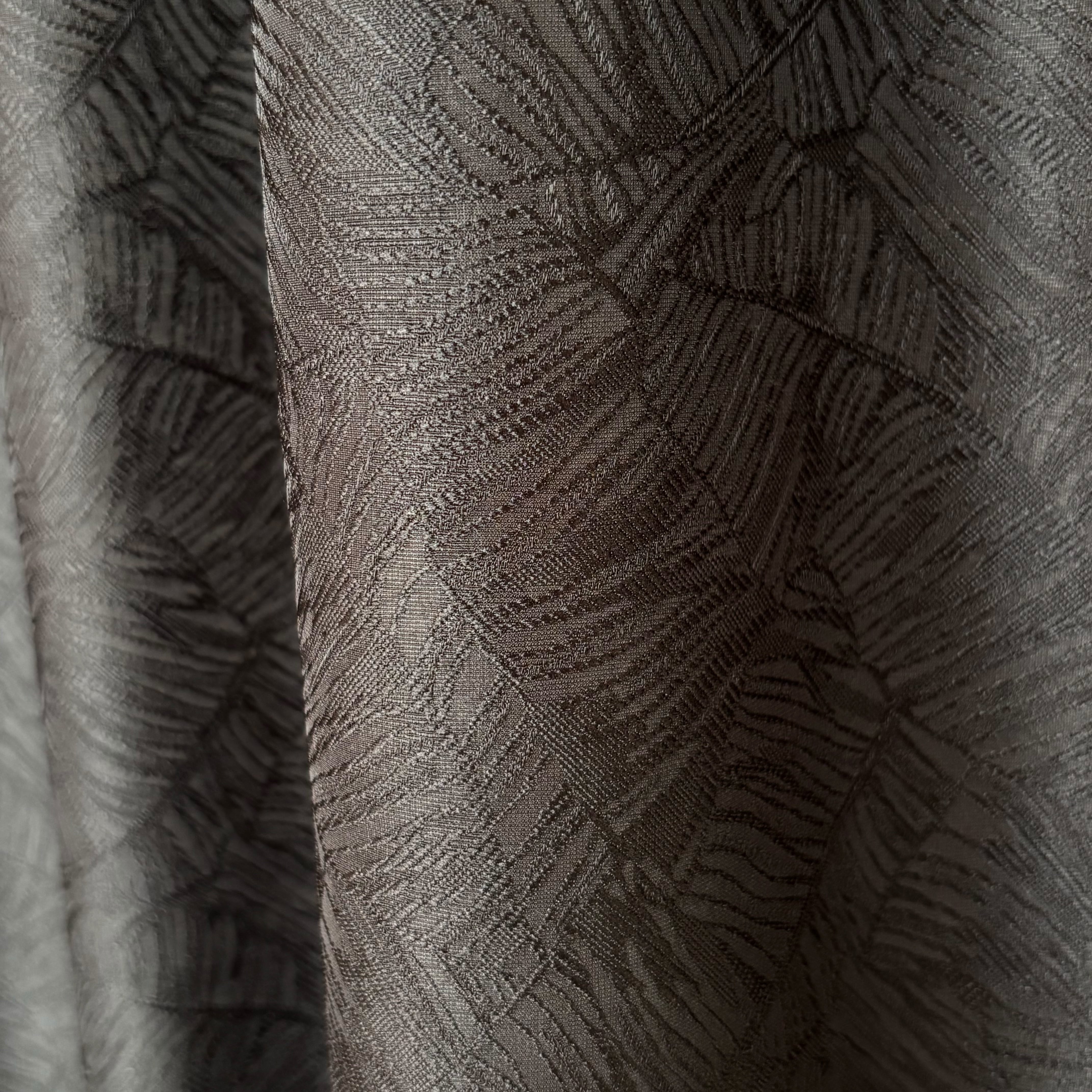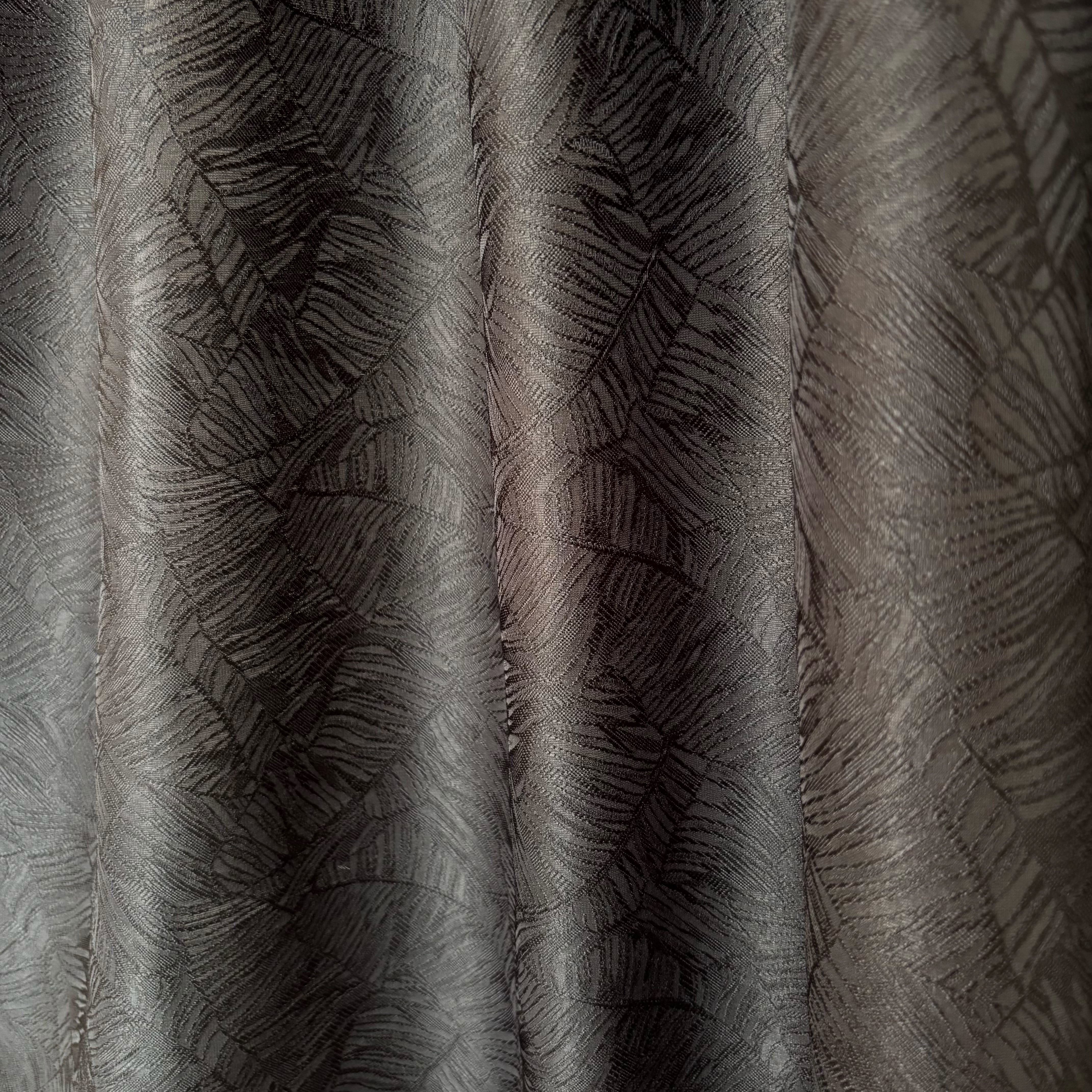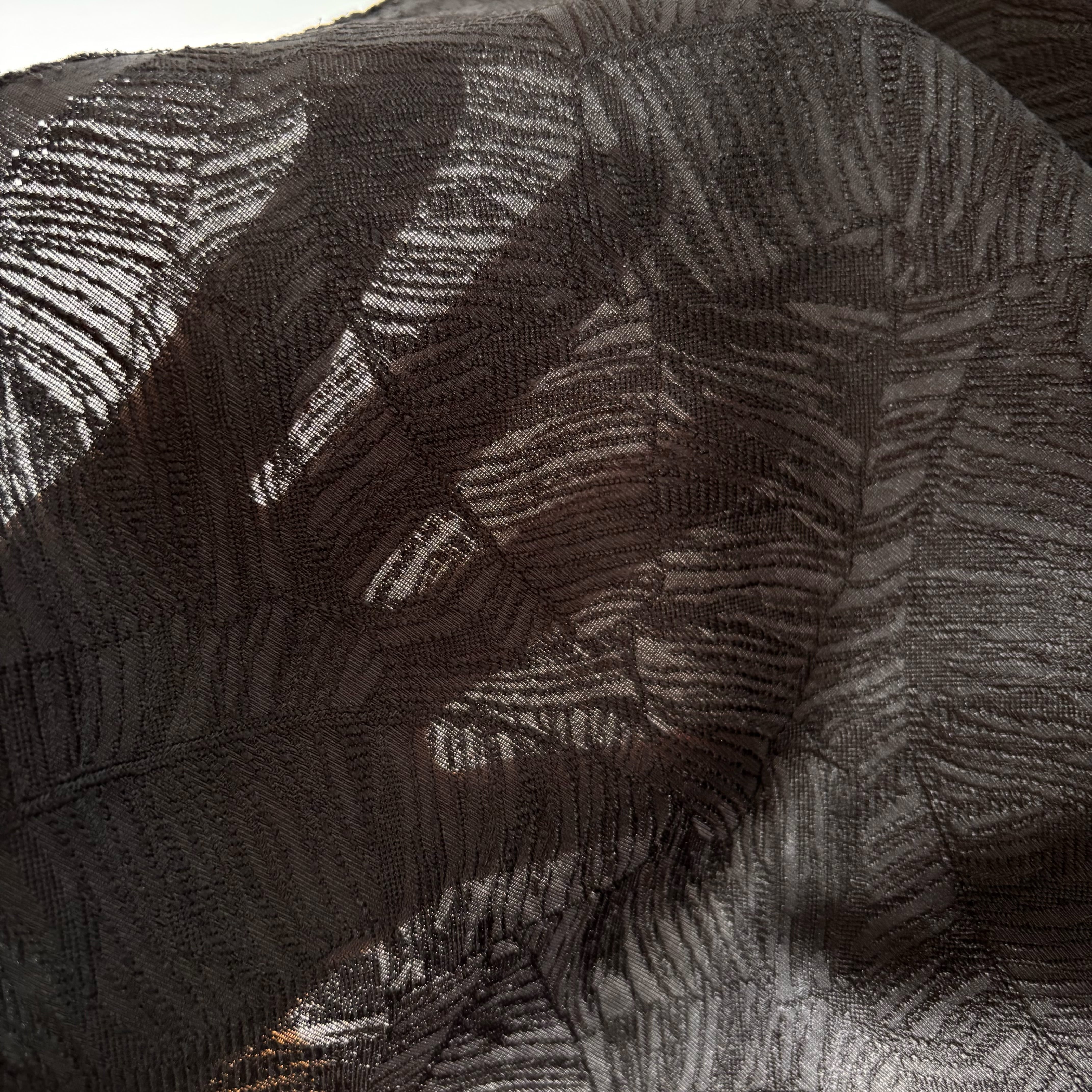 リネンのようなナチュラルな風合いを表現した、ポリエステル100%のジャガード生地です。薄手で軽やかさがありながら、シワになりにくく扱いやすいイージーケア素材です。大胆なボタニカル柄を織りで上品に表現しており、存在感がありながらも主張しすぎない落ち着いた印象が魅力です。接触冷感性と速乾性も兼ね備えており、さらりと快適にお使いいただけます。