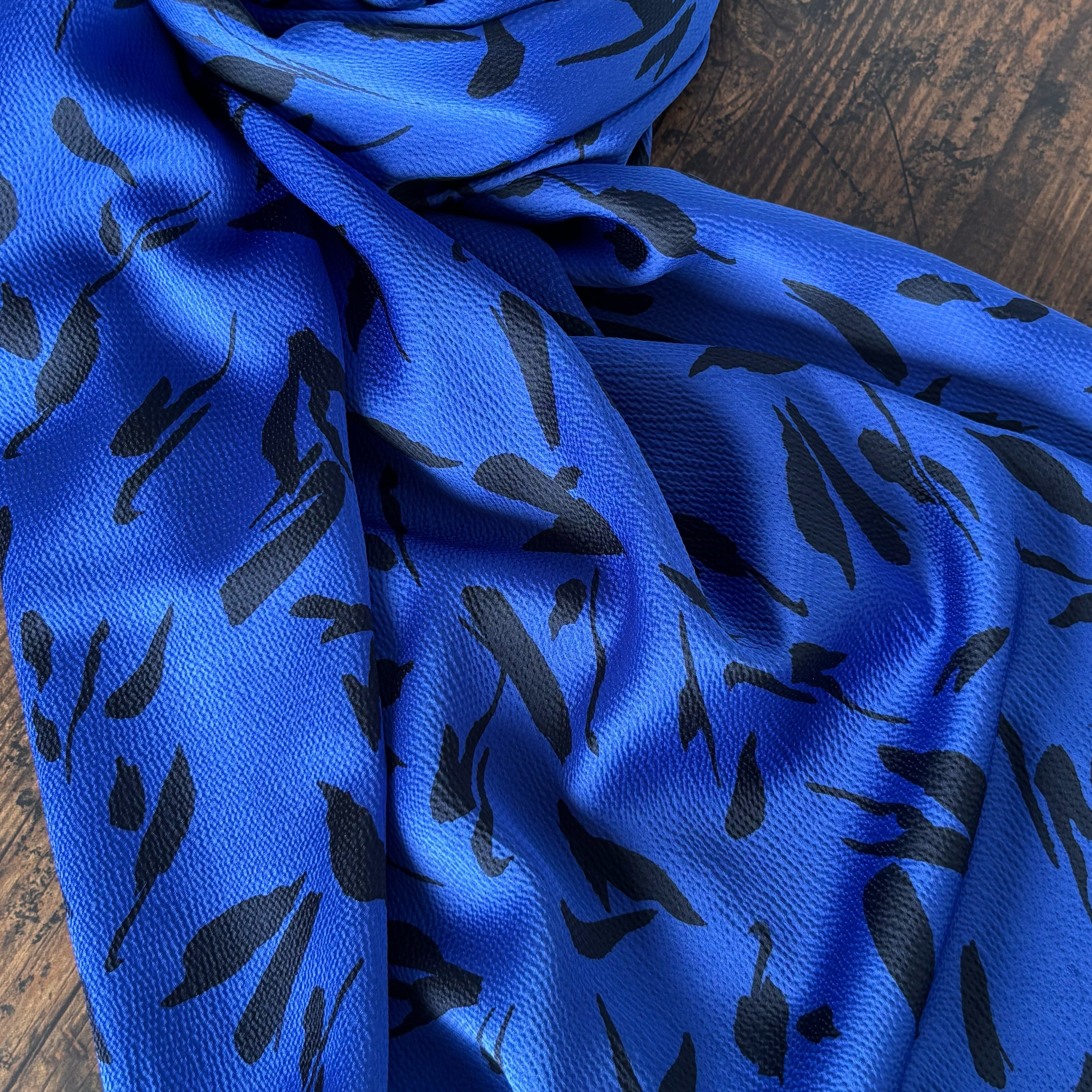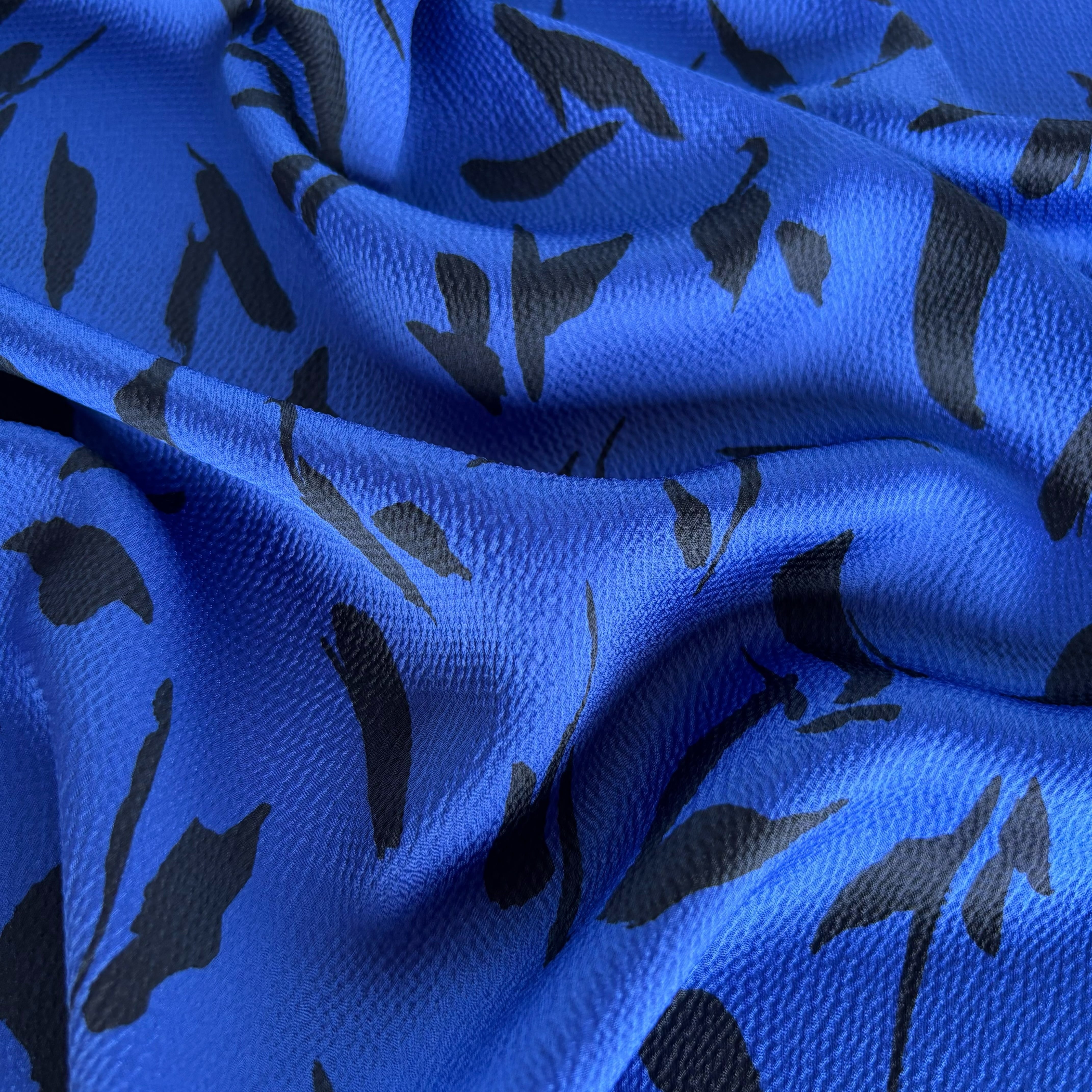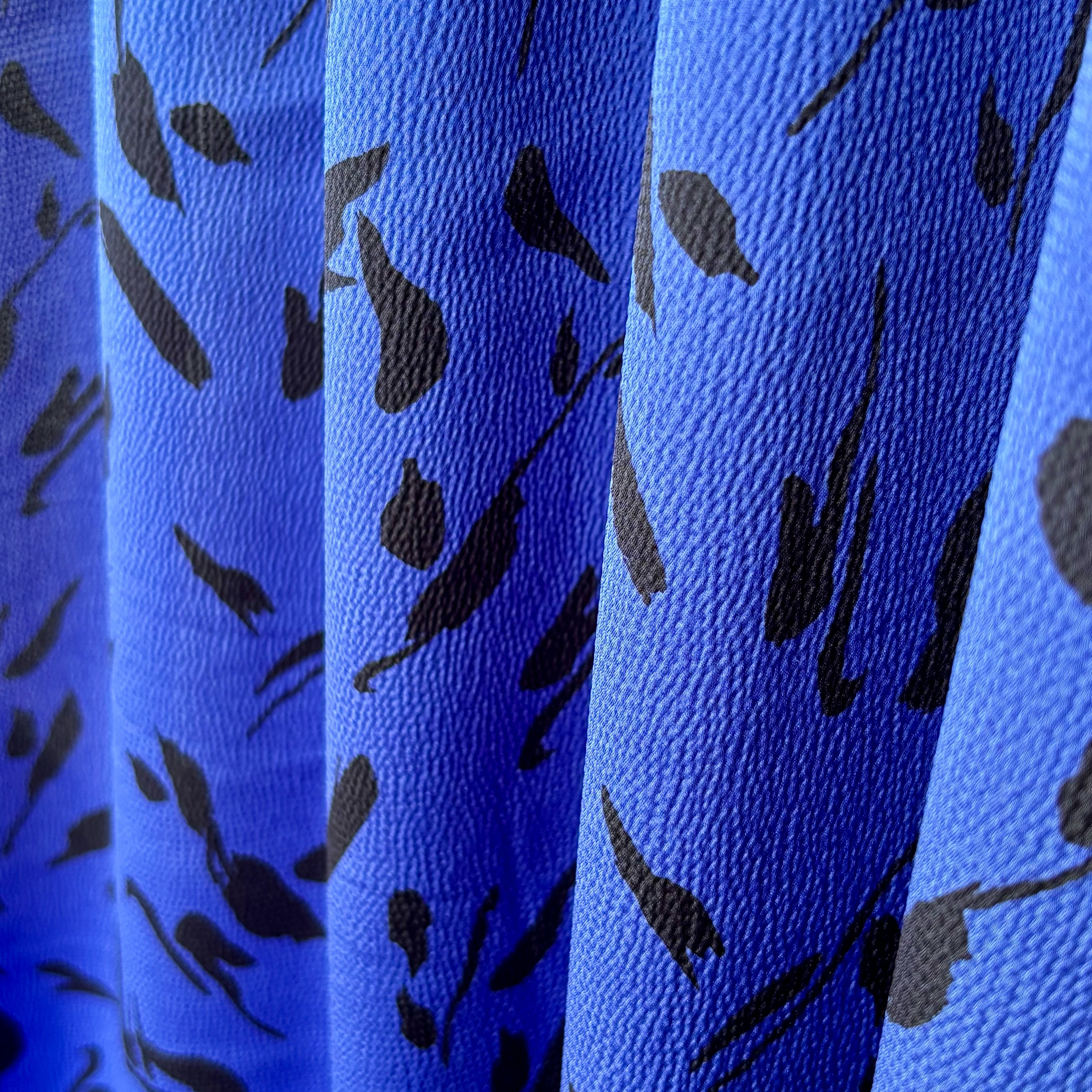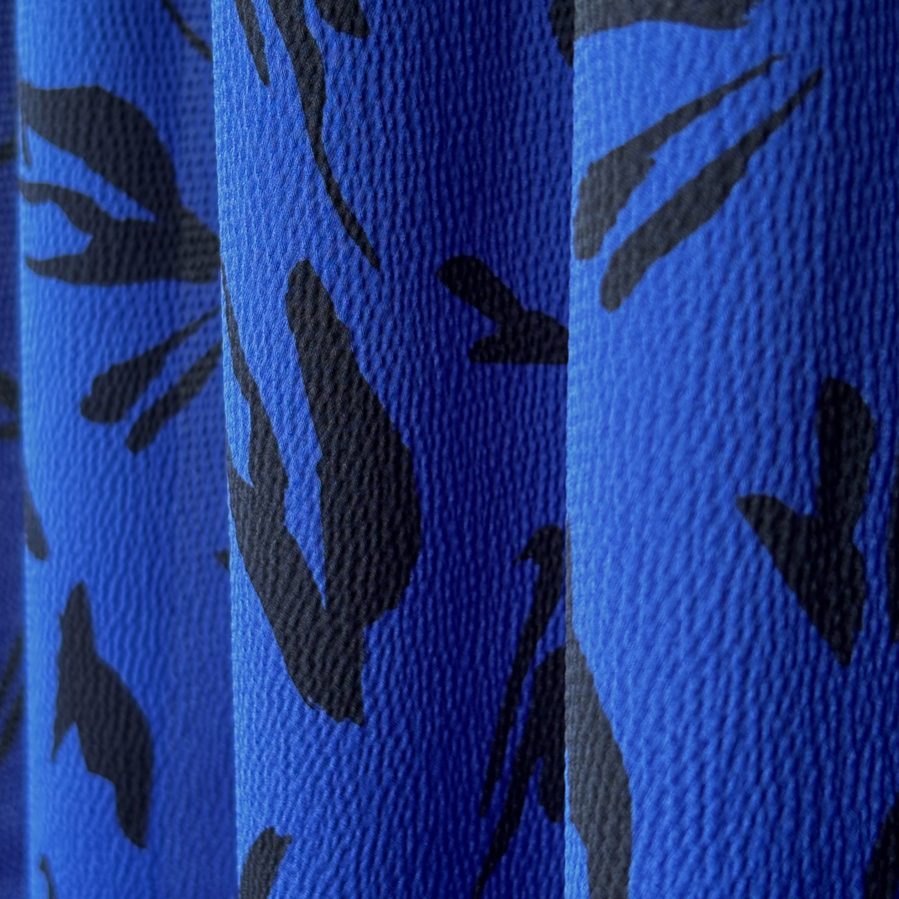 細かな凹凸のある繊細なシボが特徴で、見る角度によって光沢の表情が変わります。ナチュラルなストレッチ性に加え、接触冷感や速乾性も備えており、汗ばむ季節にも快適にお使いいただけます。