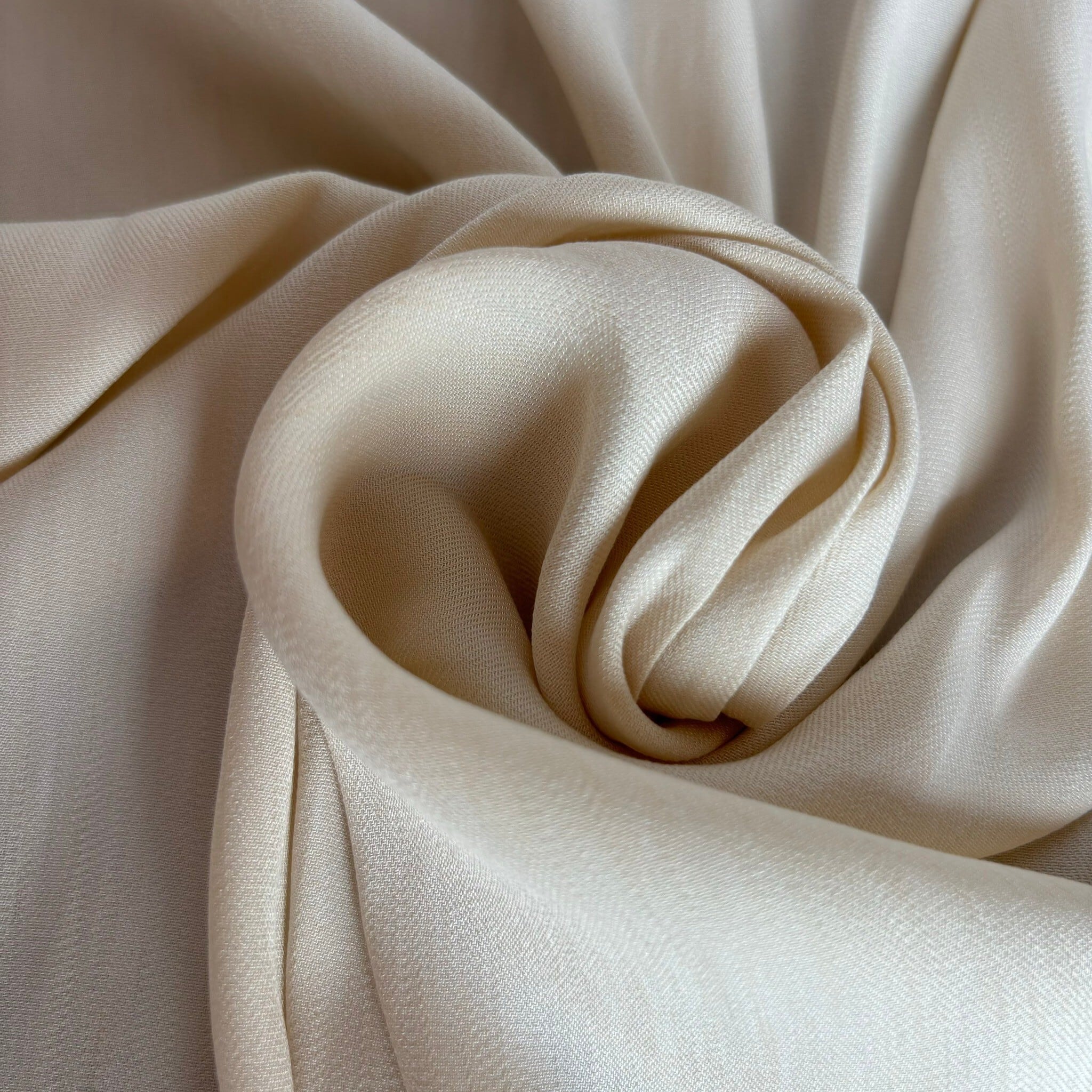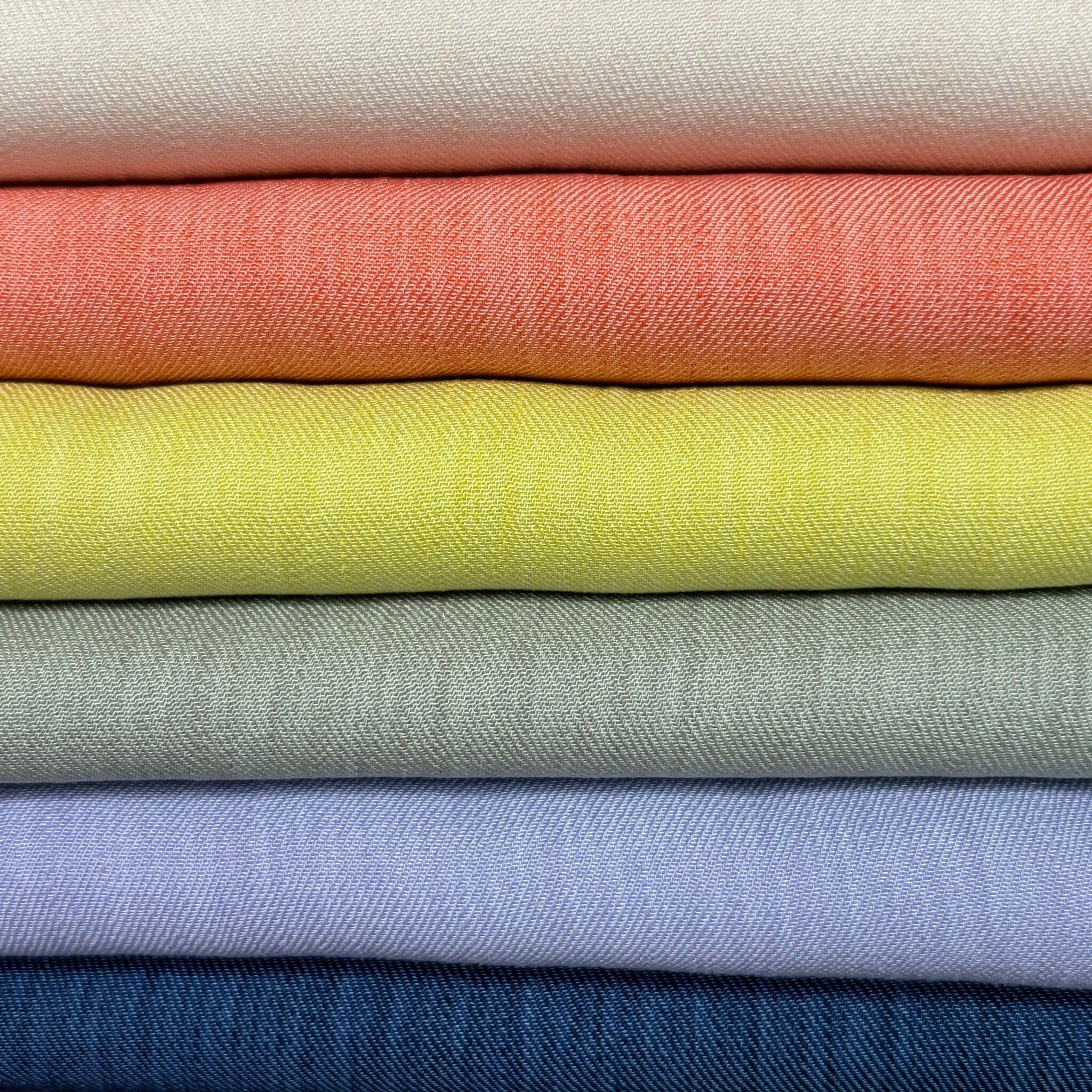 シワになりにくく、上品な光沢感が特徴の高品質な割繊素材です。この素材は、肌触りが滑らかで着心地の良さを実感でき、柔らかなドレープ性が洋服にエレガントなシルエットを与えます。スカートやワンピースに使用すると、優雅な落ち感が生まれ、身体に優しくフィットします。さらに、ガウチョパンツなどの広がりのあるデザインでも、その美しいドレープ性が活きます。ファッション性と機能性を兼ね備えたこの素材は、日常から特別なシーンまで幅広くお楽しみいただけます。