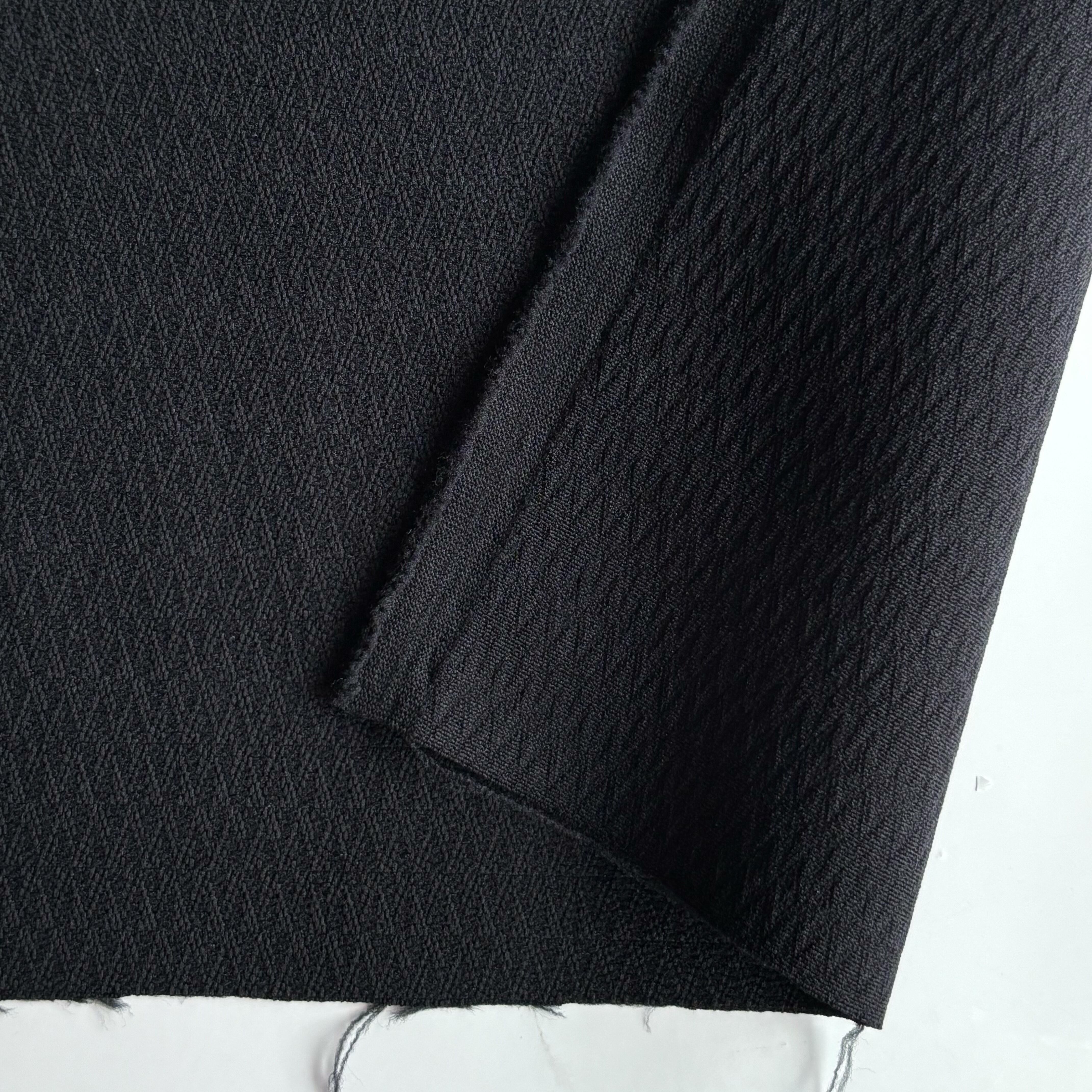 蝶理(株)の機能糸 TEXBIRID® を使用したジャガード生地です。ストレッチ性と形状回復力に優れ、快適な着心地を実現します。適度な肉感と控えめな光沢感があり、シルエットを美しく表現。トップスからボトムスまで、幅広いアイテムにご活用いただけます。